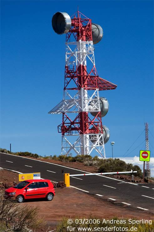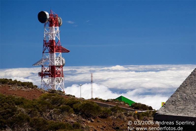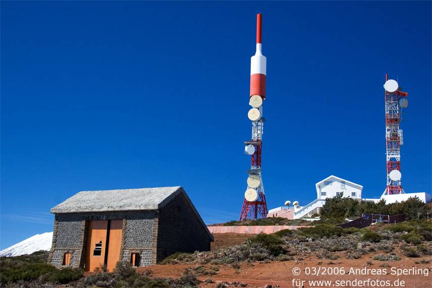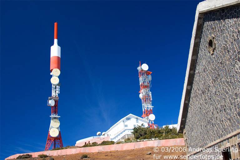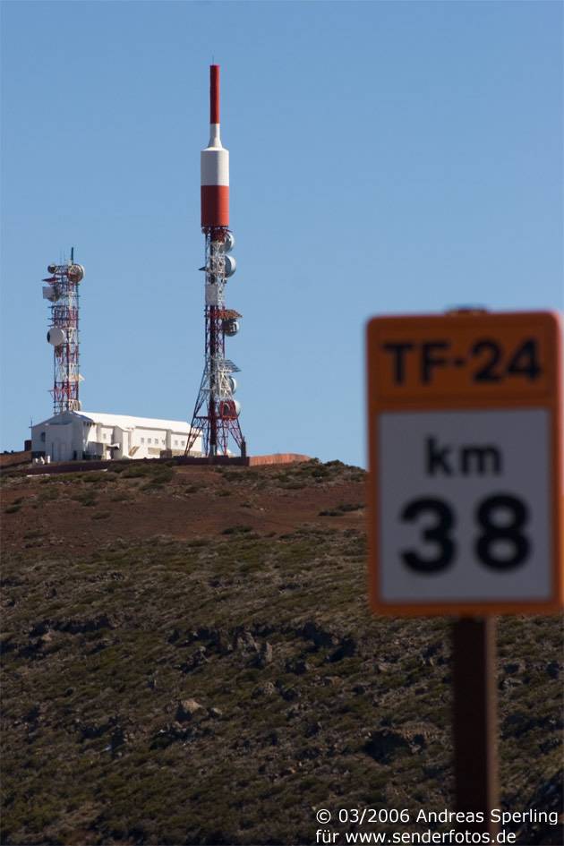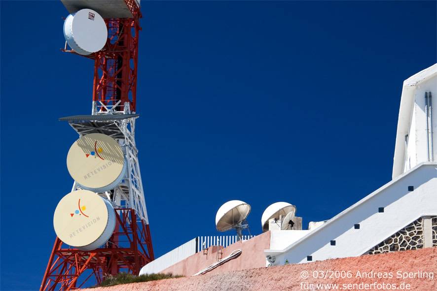 Retevisión – 21.02.2025: Die Sendeanlage in einer Höhe von 2386 m deckte im Fernsehbereich auf Kanal 3 mit einer Leistung von 350 kW einst fast das gesamte kanarische Archipel ab. Inzwischen wird mit deutlich geringeren Leistungen gearbeitet: Im DVB-T-Modus werden folgende Bouquets abgestrahlt: MPE1 (Kanal 23/8,71 kW), MPE3 (Kanal 26/8,71 kW), MPE2 (Kanal 29/8,71 kW), MPE5 (Kanal 39/8,71 kW), RGE2 (Kanal 42/8,71 kW), RGE1 Canaria (Kanal 45/8,71 kW), MPE4 (Kanal 50/8,71 kW) und MAUT Canaria (Kanal 59/8,71 kW). Eine deutlich höhere Leistung von 60 kW haben die Hörfunkprogramme im UKW-Bereich: RNE Radio 3 (90.0 MHz), RNE Radio Nacional Canarias (92.3 MHz), RNE Radio Clásica (96.2 MHz) und RNE Radio 5 Todo Noticias Santa Cruz (98.1 MHz).