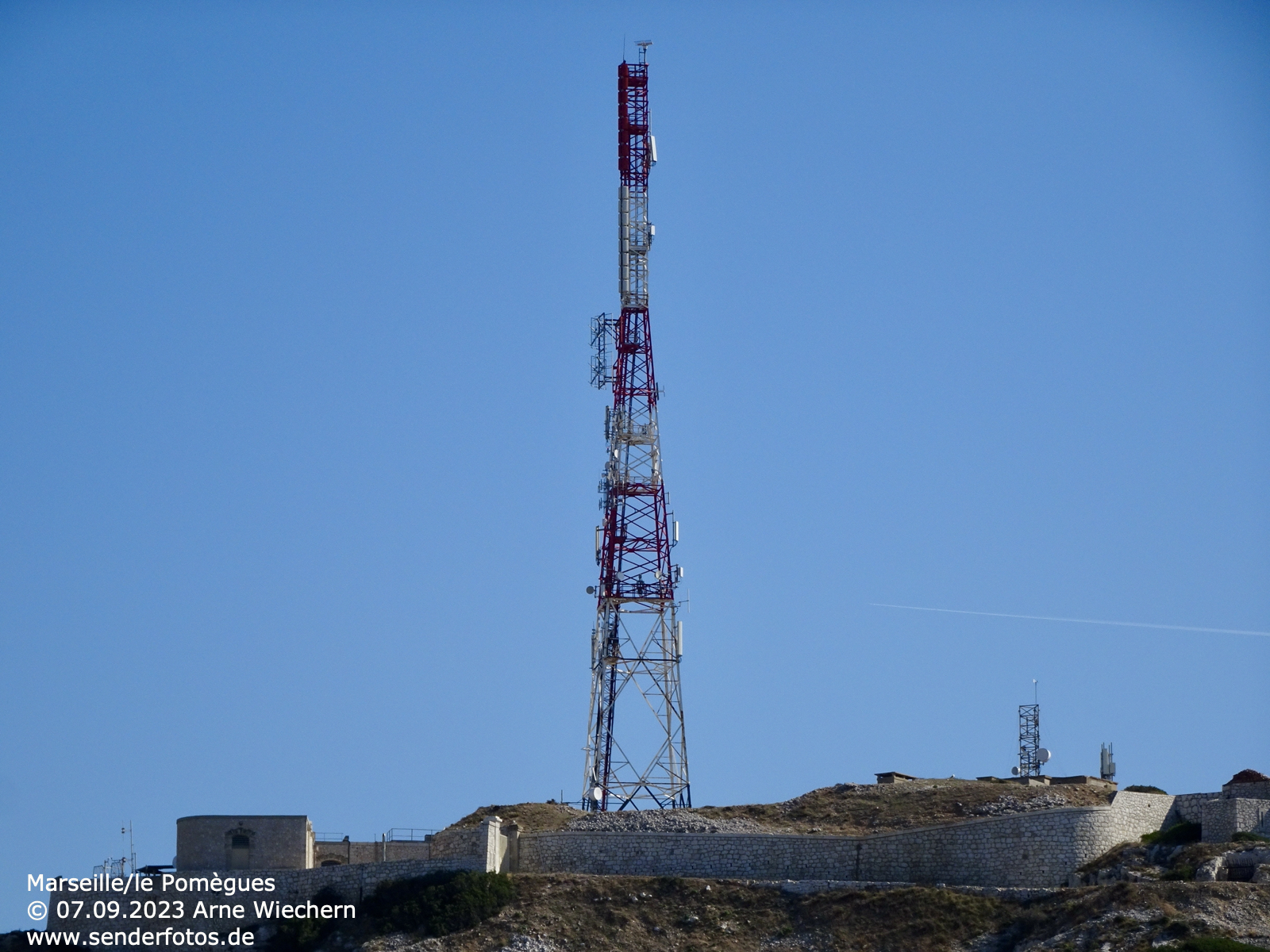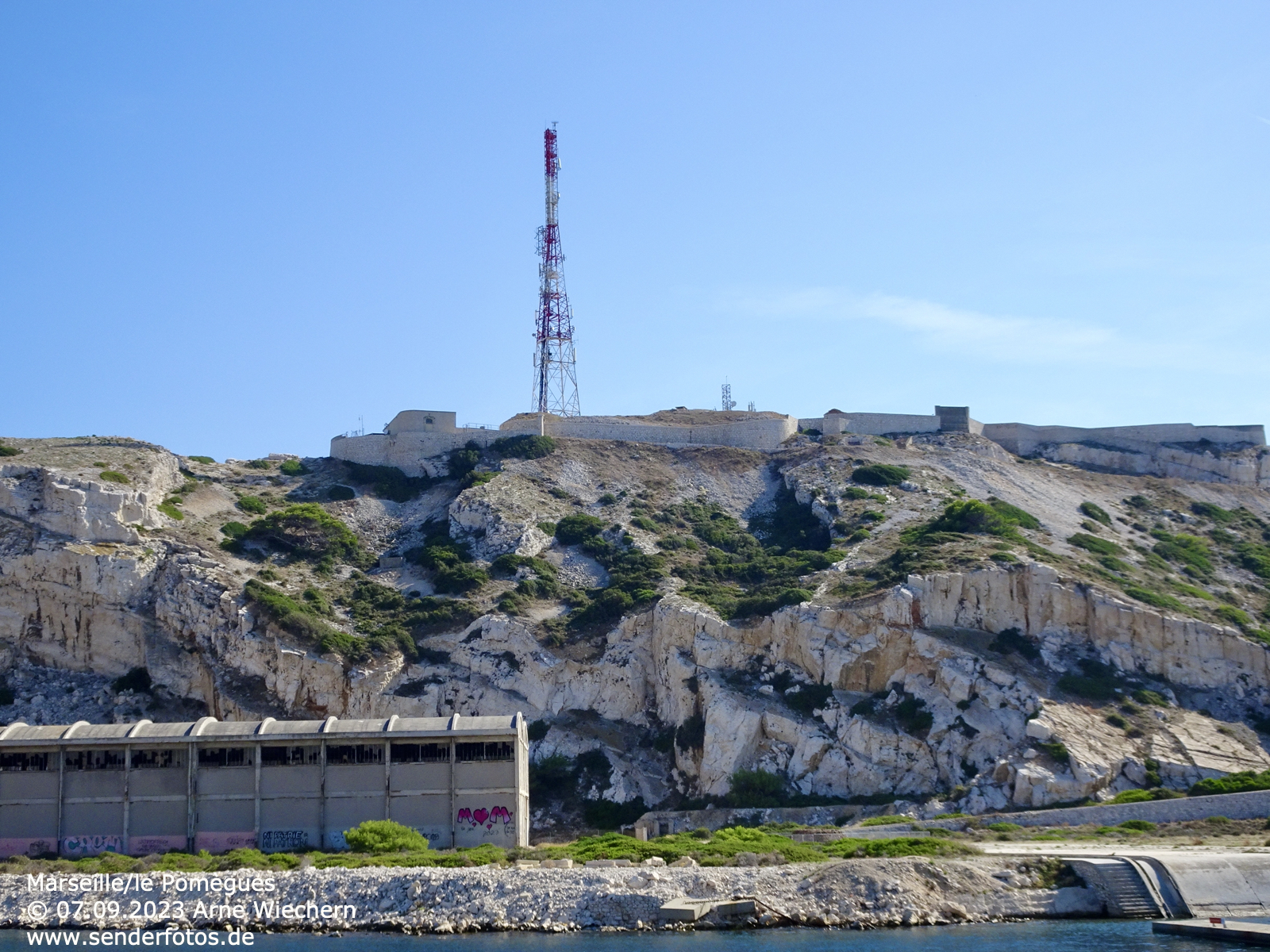 15.09.2023: Auf der Marseille vorgelagerten Insel Îles de Frioul befindet sich ein Sendemast, der unter anderem Antennen für UKW- und DAB+-Ausstrahlungen trägt. Er dient vor allem der Versorgung der Innenstadt von Marseille.
