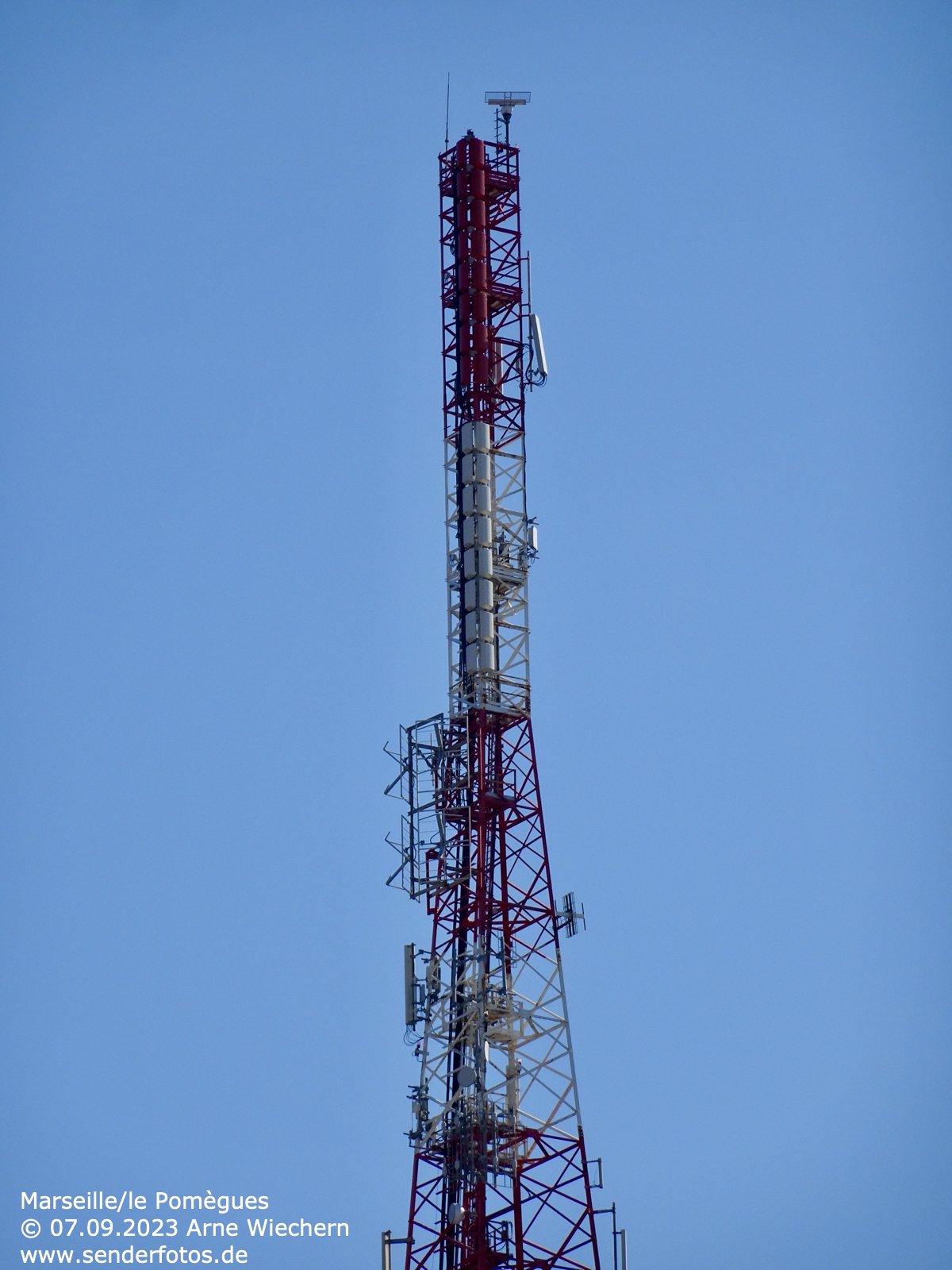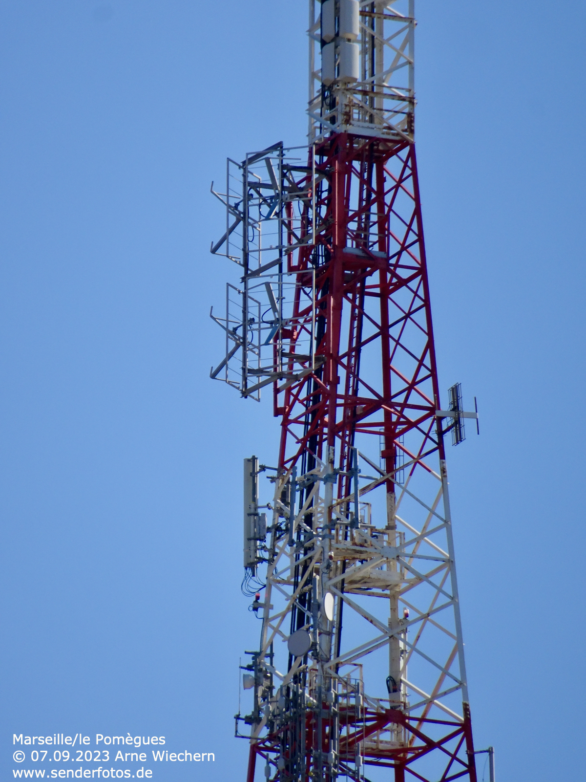 21.12.2023: Am südlichen Rand der Innenstadt von Arles befindet sich auf dem Fahrstuhlturm des Parkhauses parking des Lices eine UKW-Sendeanlage, von der zwei Hörfunkprogramme abgestrahlt werden. RMC sendet auf 104,5 MHz (1 kW), France Info auf 105,0 MHz (ebenfalls 1 kW).