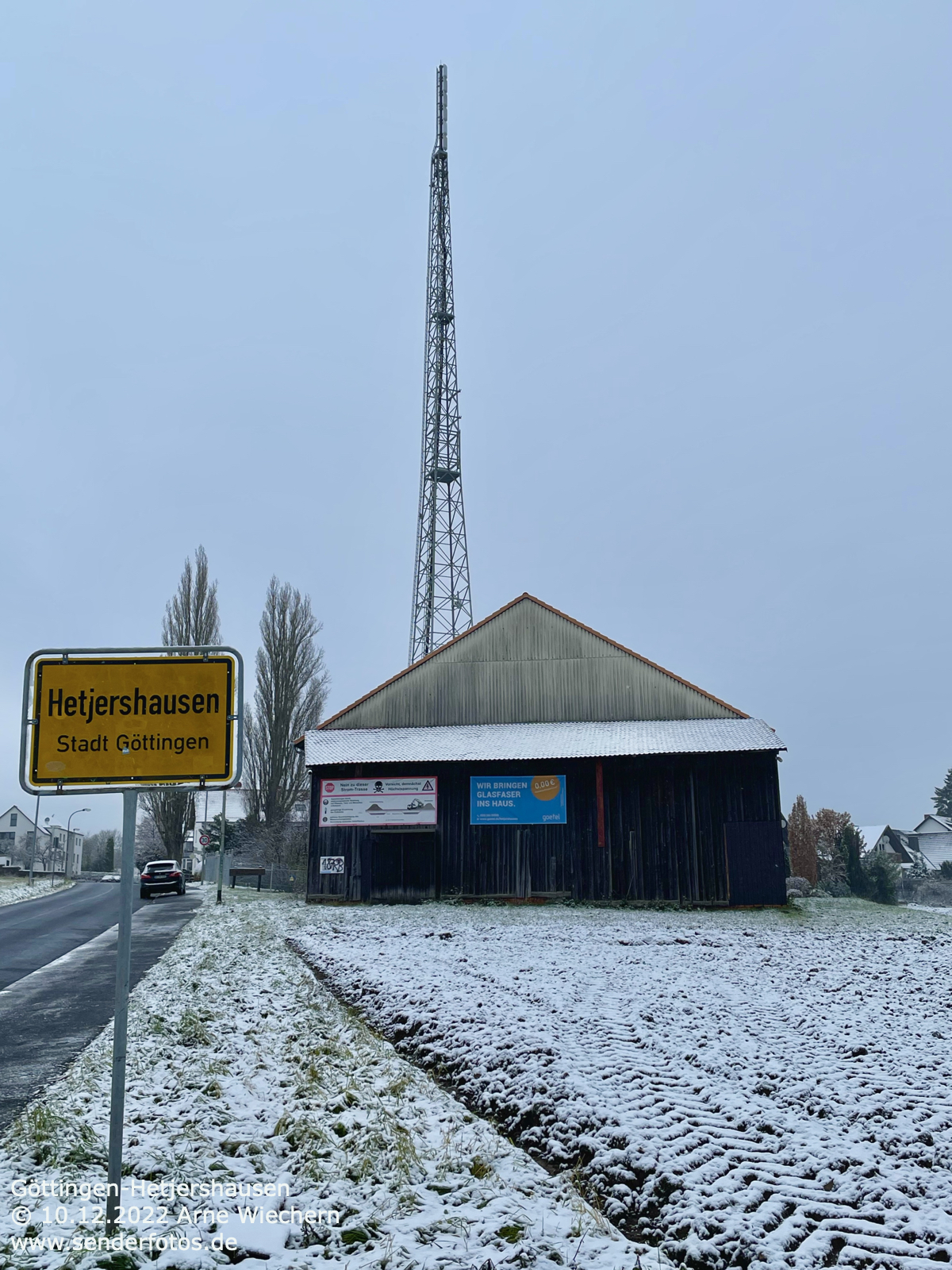 26.03.2022: Der unscheinbare Mast, der an einem Stallgebäude eines landwirtschaftlichen Großbetriebes südlich von Wissembourg (Weißenburg) montiert ist, dient als Antennenträger für die Sendeanlage von Phare FM Haguenau (92,5 MHz / 0,5 kW). Die Antenne befindet sich in einer Höhe von 14 m über Grund.