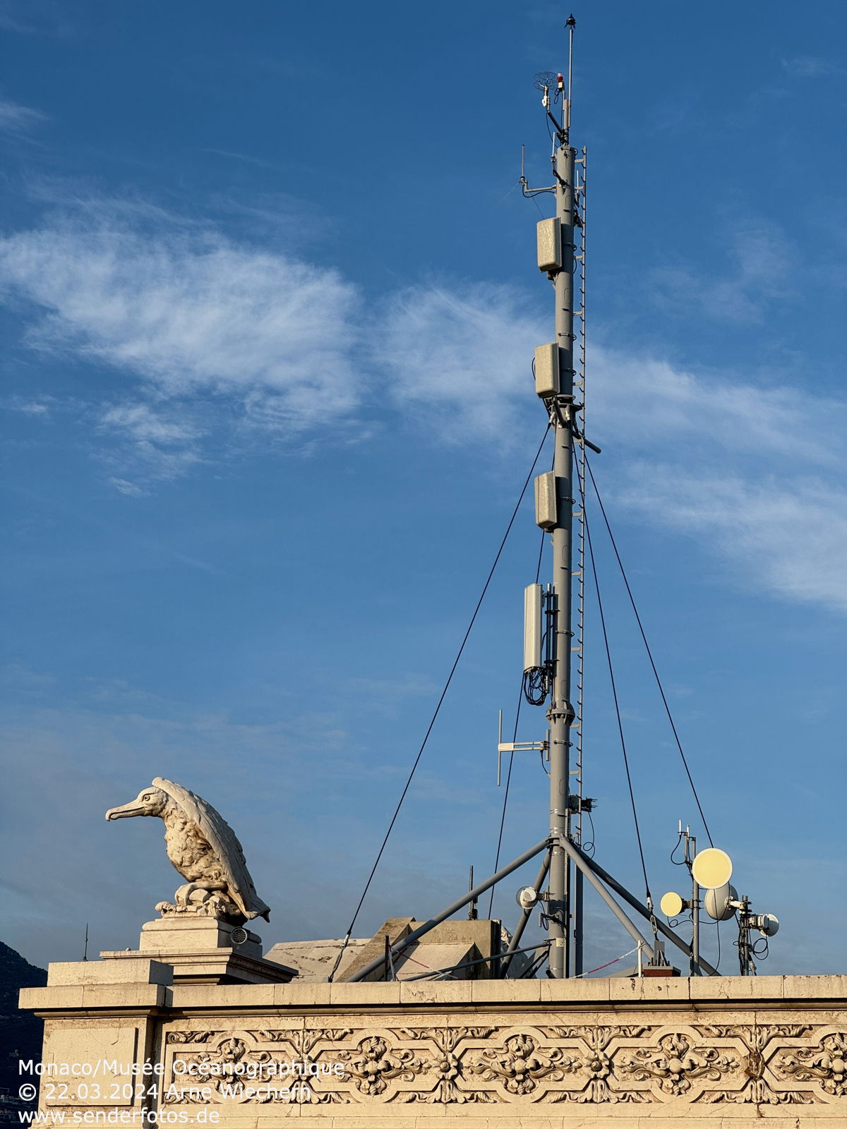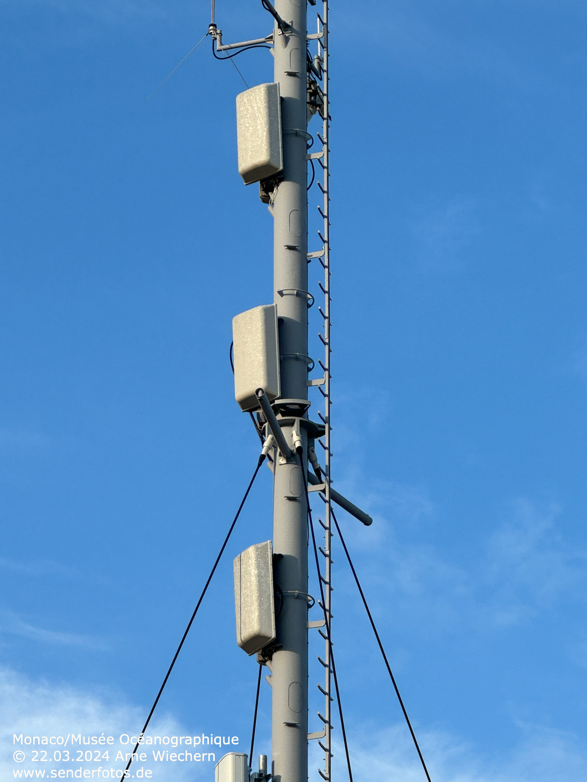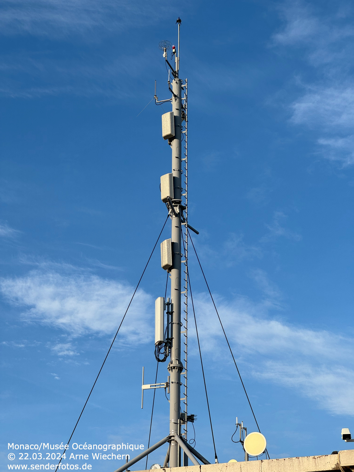 13.12.2024: Die Sendeanlage auf dem Dach des Ozeanographischen Museums in Monaco strahlt drei Programme im UKW-Bereich aus: RDS (103,3 MHz/0,4 kW), Chérie FM (104,5 MHz/0,1 kW) und Riviera Radio (106,3 MHz/1 kW). Hinzu kommen DVB-T-Ausstrahlungen.
