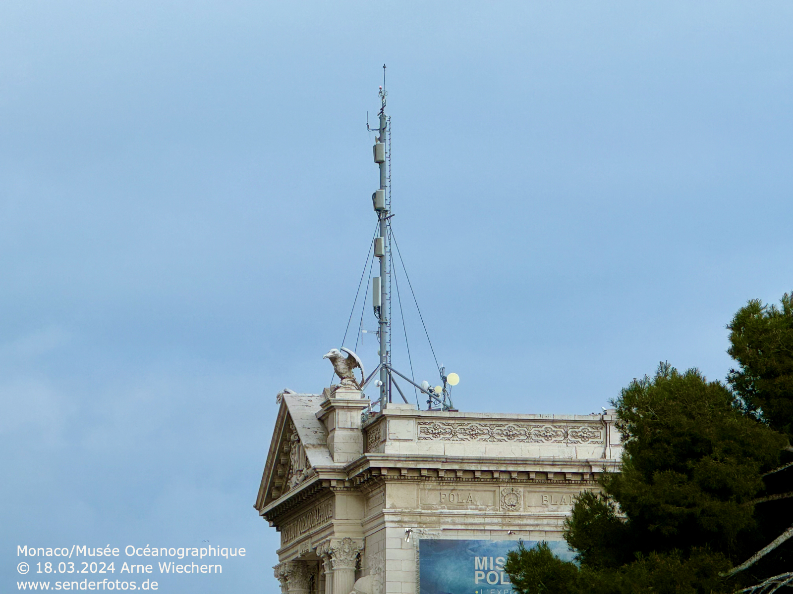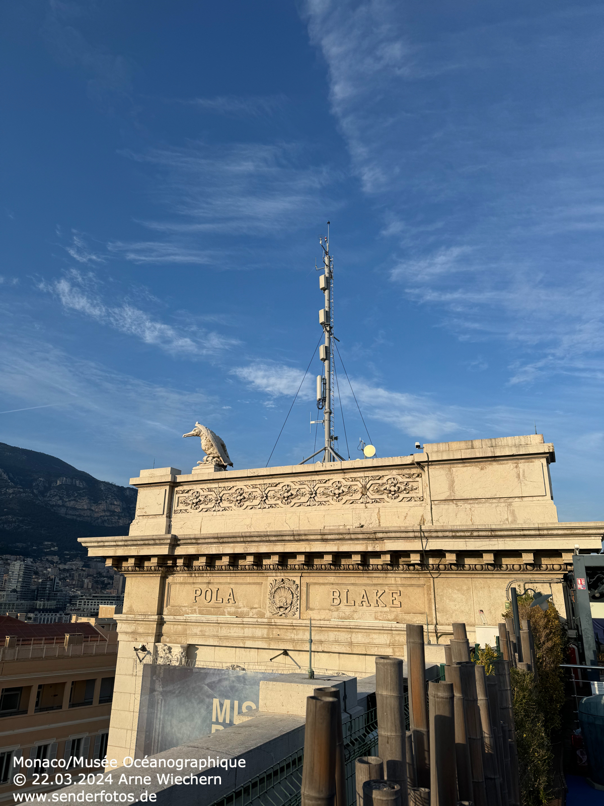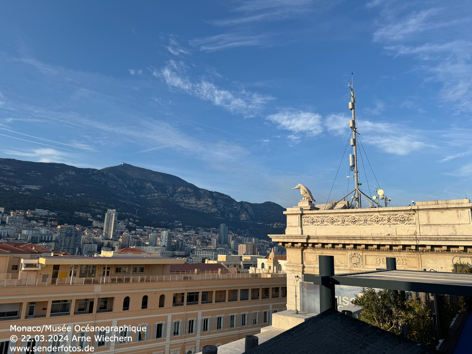13.12.2024: Die Sendeanlage auf dem Dach des Ozeanographischen Museums in Monaco strahlt drei Programme im UKW-Bereich aus: RDS (103,3 MHz/0,4 kW), Chérie FM (104,5 MHz/0,1 kW) und Riviera Radio (106,3 MHz/1 kW). Hinzu kommen DVB-T-Ausstrahlungen.