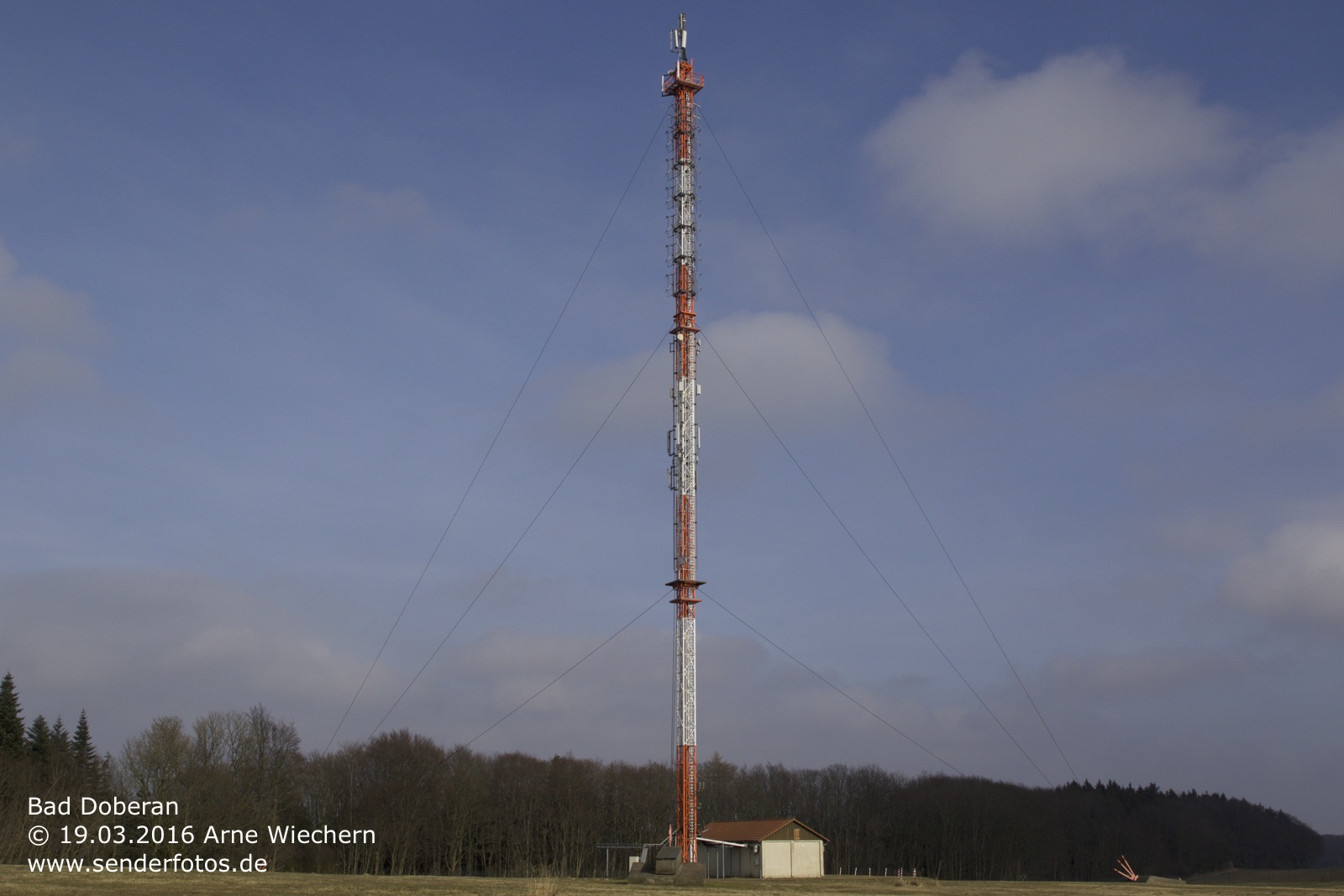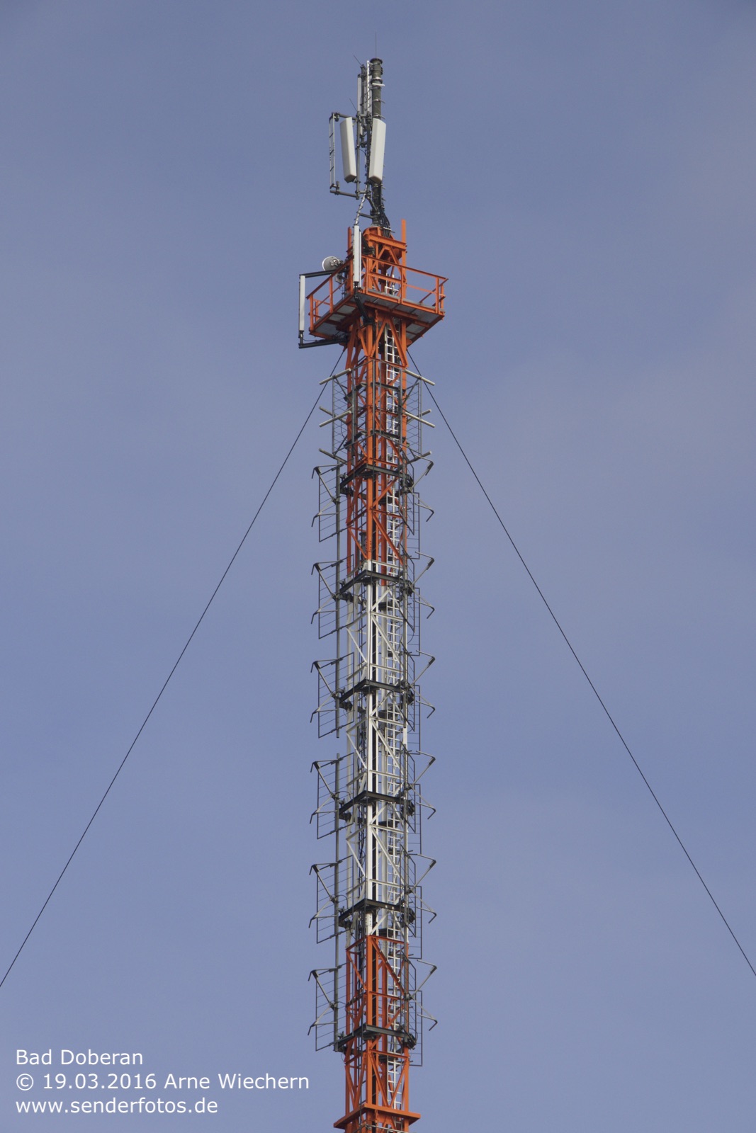 (DFMG Deutsche Funkturm GmbH) – 20.03.2016: Der Sender Bad Doberan südlich vom Ostseebad Kühlungsborn füllt Empfangslücken der Programme NDR 1 Radio MV und N-Joy. Aus einer Höhe von 75 m wird NDR 1 Radio MV auf 94,3 MHz mit einer Leistung von 0,2 kW ausgestrahlt – eine Antenne in 64 m Höhe nutzt N-JOY auf 103,7 MHz mit 5 kW.