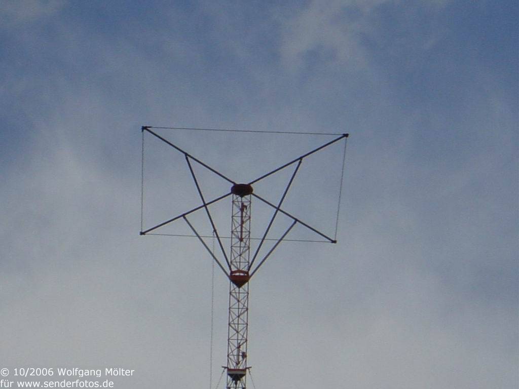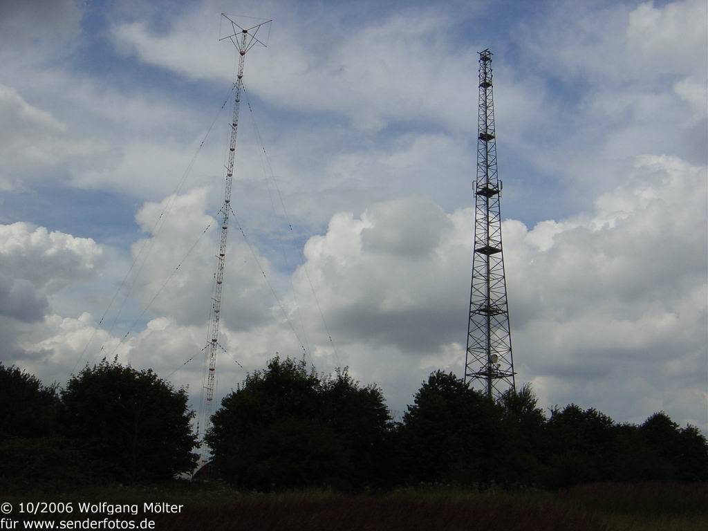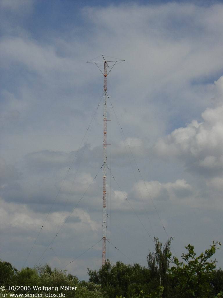 (ehemals Mediabroadcast) – 24.01.2013: Hierbei handelt es sich um den ehemaligen MW-Sender von MEGARADIO auf 576 kHz. Der Sender strahlte mit einer Leisrung von 250 kW gerichtet nach 140 Grad (Süd-Osten) ab. Nach der Insolvenz von MEGARADIO ist die Anlage abgeschaltet. Für denselben Standort ist auch die 999 kHz mit einer Leistung von 20 kW koordiniert, allerdings schon längere Zeit außer Betrieb. Das gesamte Areal wirkt sehr heruntergekommen. Zudem hat kurze Zeit vor meiner Besichtung rund um die Sendetürme ein „Flächenbrand“ große Teile der Vegetation vernichtet. Die Besichtigung der Anlage gestaltet sich schwierig, da die Telekom nur noch die wenigen Quadratmeter für die Türme vom neuen Eigentümer des Geländes zurückgemietet hat. Foto 4 zeigt die nach dem Flächenbrand erheblich beschädigte Vegetation unterhalb des nördlichen Sendemasts. Der Mast selbst hat wohl keinen Schaden genommen – ein kleines Wunder, wenn man bedenkt, in welcher Höhe die im Hintergrund stehende Birke noch verkohlt und abgestorben ist. Update vom 01. April 2007: Die Sendemasten wurden im Frühjahr 2006 demontiert. Lediglich die Sendehäuschen und die umliegenden Gebäude stehen noch.