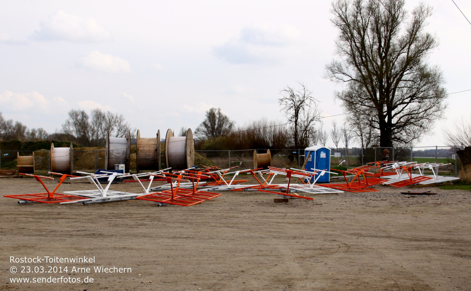Zum Zeitpunkt der Fotoaufnahmen am 23.03.2014 war der Sender Rostock-Toitenwinkel noch nicht in Betrieb. Bild 20 zeigt die noch am Boden befindlichen UKW-Antennen für die obere Ebene.
