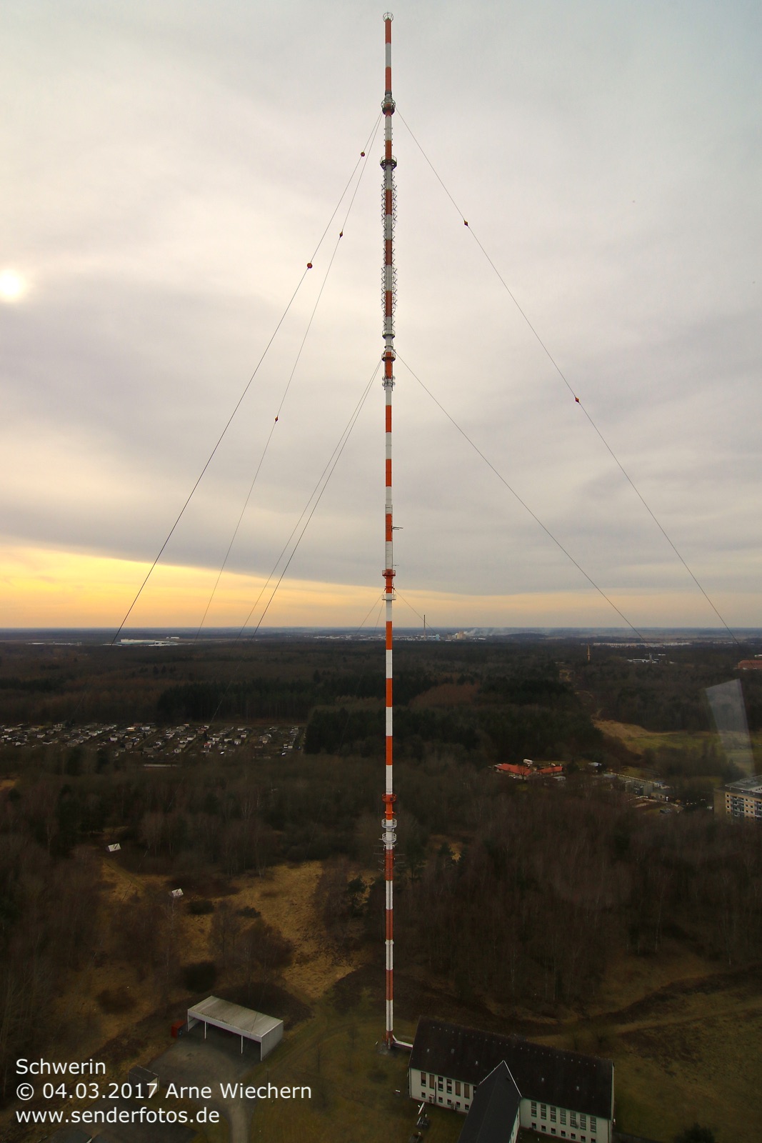 21.03.2016: Am 25. November 2014 hat „Radio Teddy“ auf 95,8 MHz (0,1 kW) seinen Sendebetrieb aufgenommen. Seit dem 13. März 2015 ist auf 105,6 MHz (0.2 kW) „JazzRadio“ auf Sendung, am 26. November 2015 kam „Radio Paradiso Nord“ auf 89,7 MHz (0,32 kW) hinzu. Zuletzt wurde noch der Sender für „sunshine live“ (92,4 MHz/0,1 kW) am 14. Dezember 2015 in Betrieb genommen. JazzRadio, Radio Paradiso Nord und sunshine live nutzen die doppelte LogPer-Antenne in 145 m Höhe, die Richtung Südosten ausgerichtet ist. Radio Teddy sendet über das Antennenfeld in 150 m Höhe. Weiterhin in Ausschreibung befindet sich die Frequenz 106,5 MHz, die über die LogPer-Antenne in 145 m Höhe ausgestrahlt werden soll. In Betrieb sind inzwischen auch zwei DABplus-Sendeanlagen. Das DR Deutschland-Multiplex auf Kanal auf Kanal 5C wird mit 2,5 kW ausgestrahlt. Das NDR MV-Multiplex ist seit dem 6. Oktober 2015 auf Kanal 11B mit ebenfalls 2,5 kW in Betrieb. Überraschend ist hier, dass kein SFN mit dem Sender Schwerin aufgebaut wurde, sondern eine andere Frequenz zum Einsatz kommt.