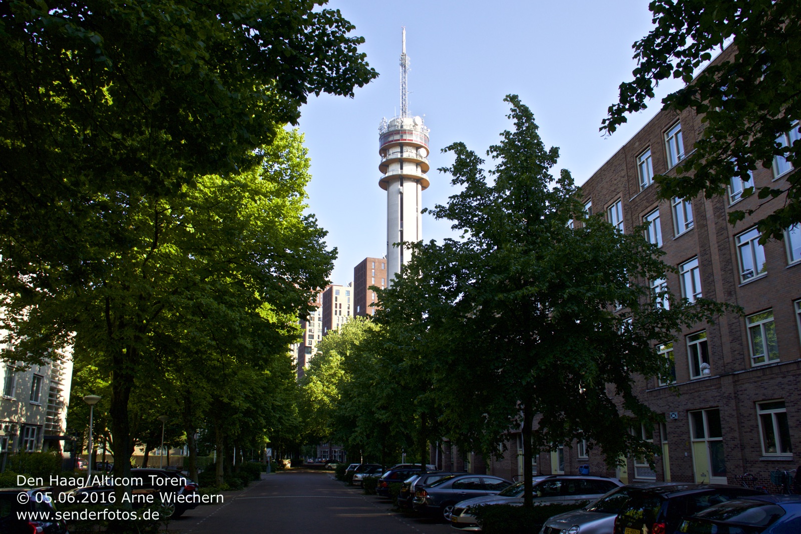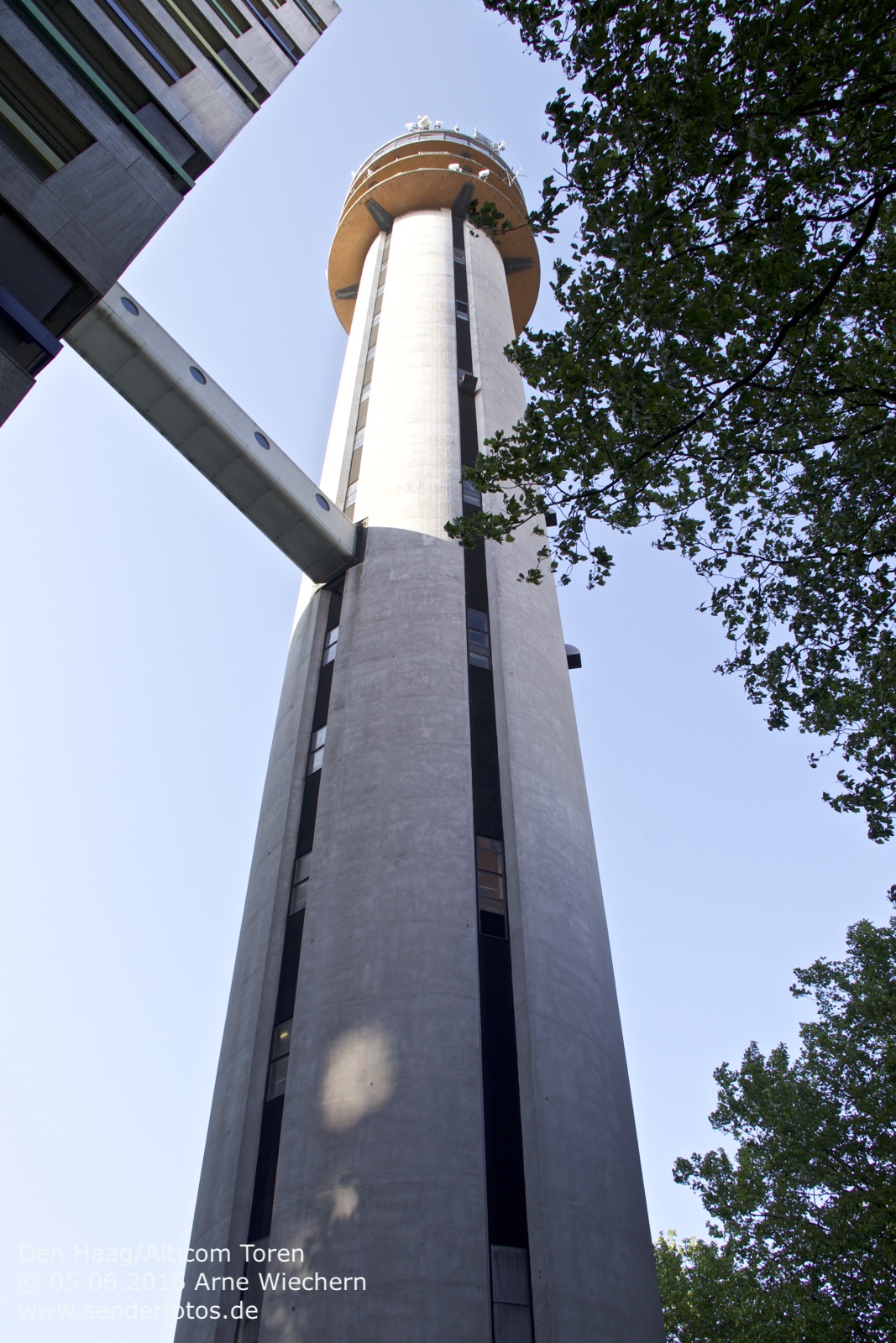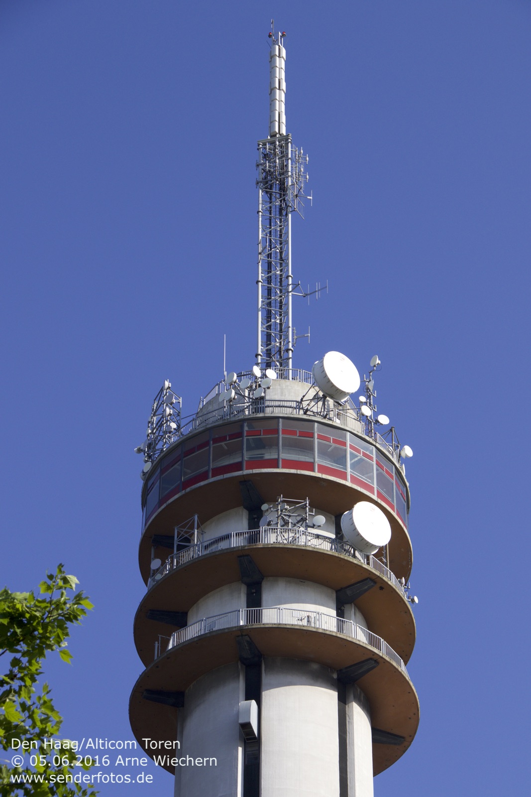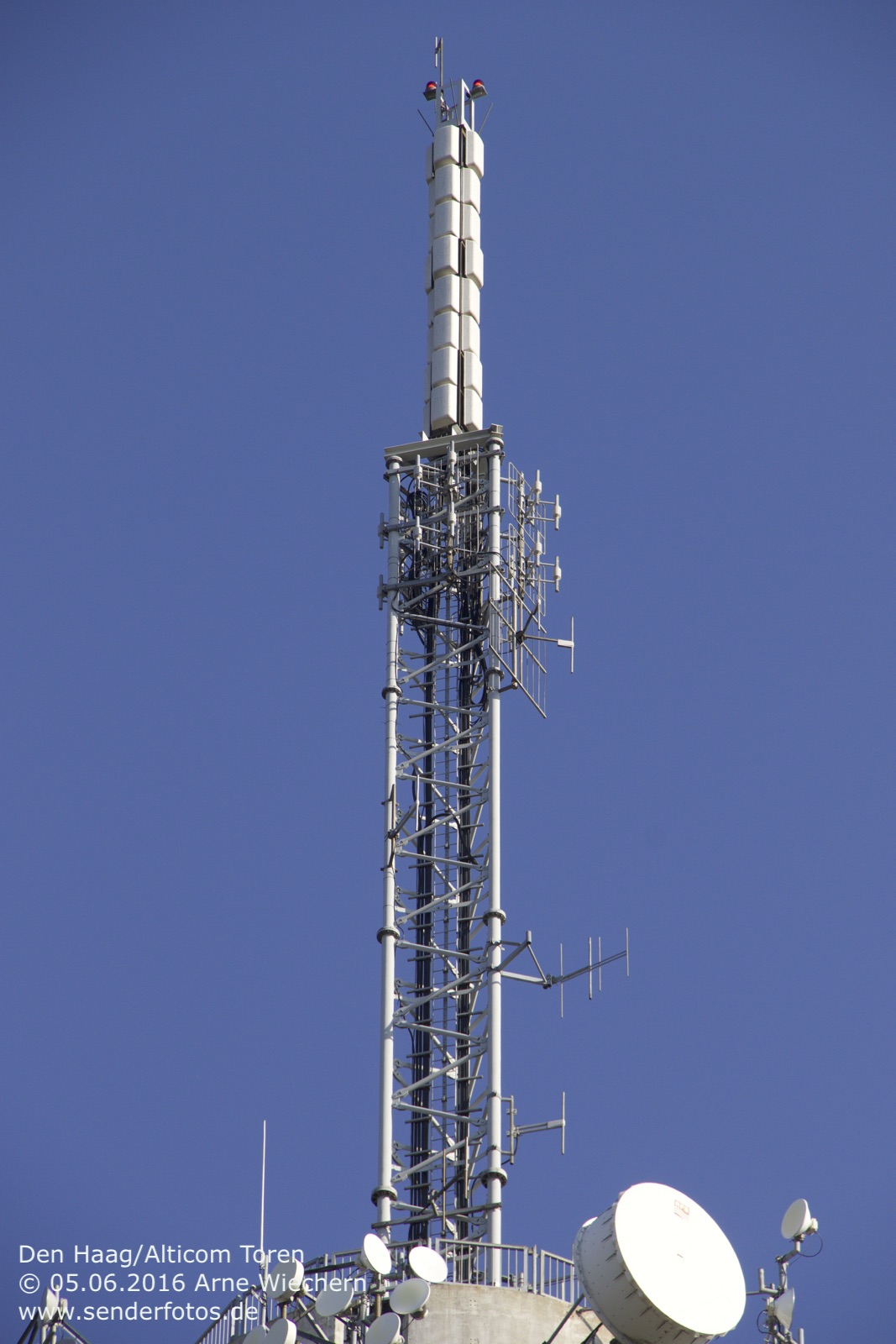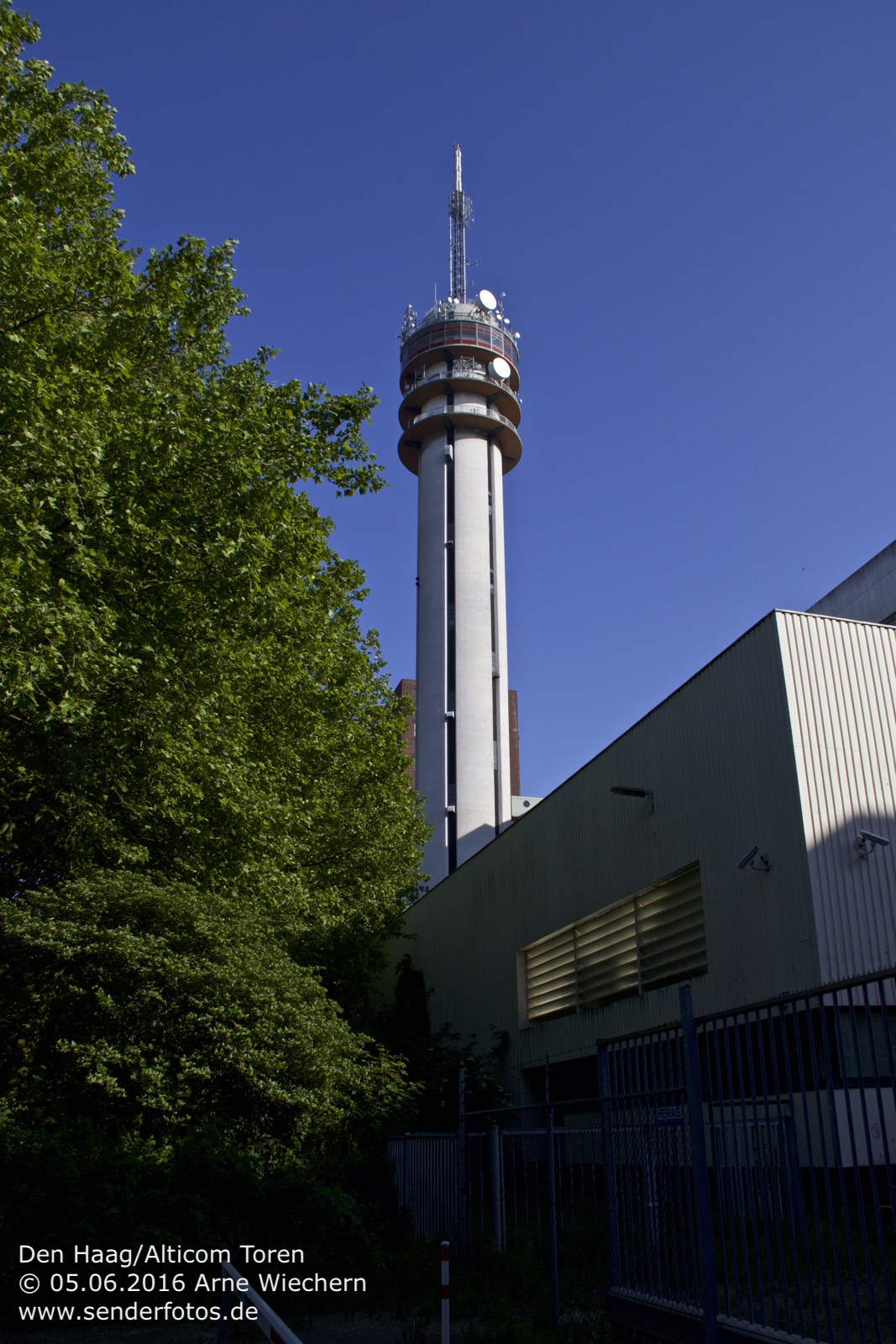 03.02.2016: Der Alticom Toren in Amsterdam in der Nähe des Messegeländes RAI ist der zentrale Standort der Stadt für Hörfunk- und TV-Ausstrahlungen. Auf UKW sind folgende Programme auf Sendung:
