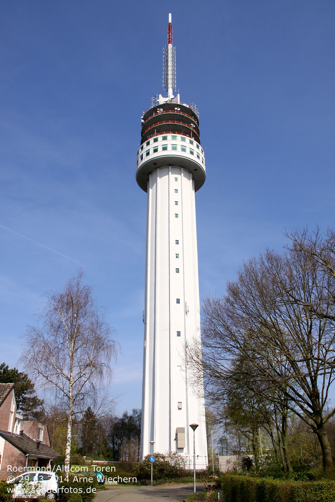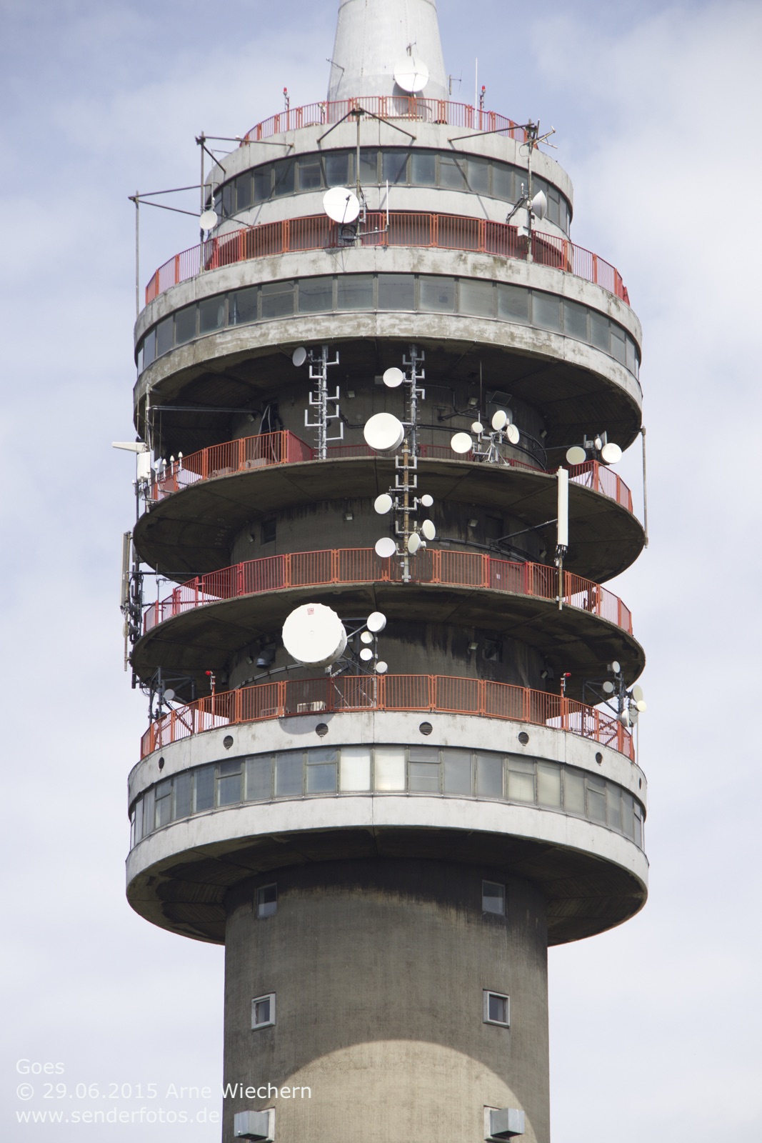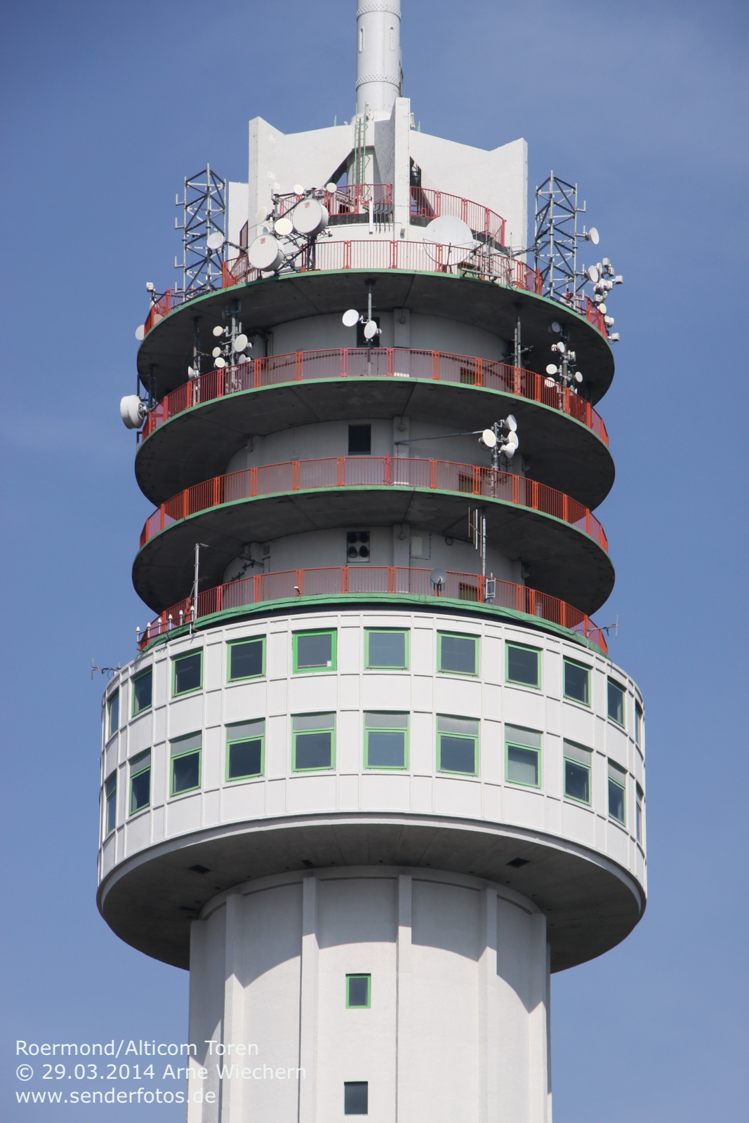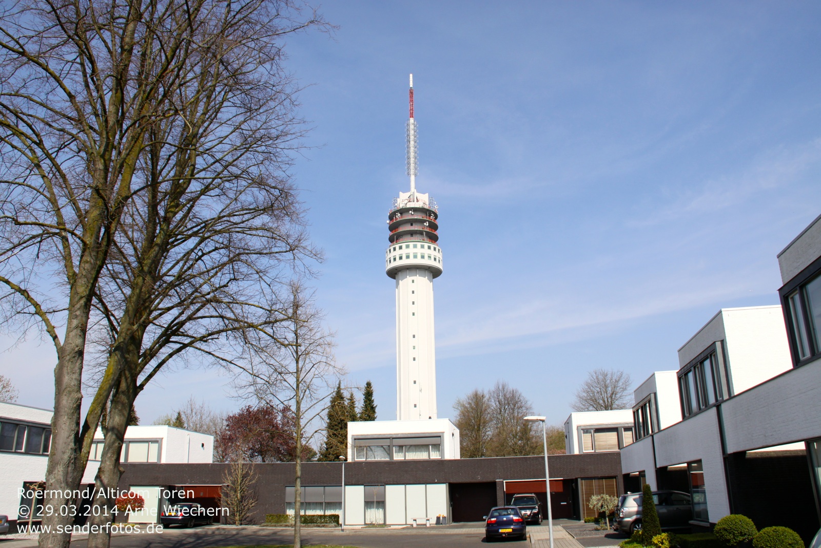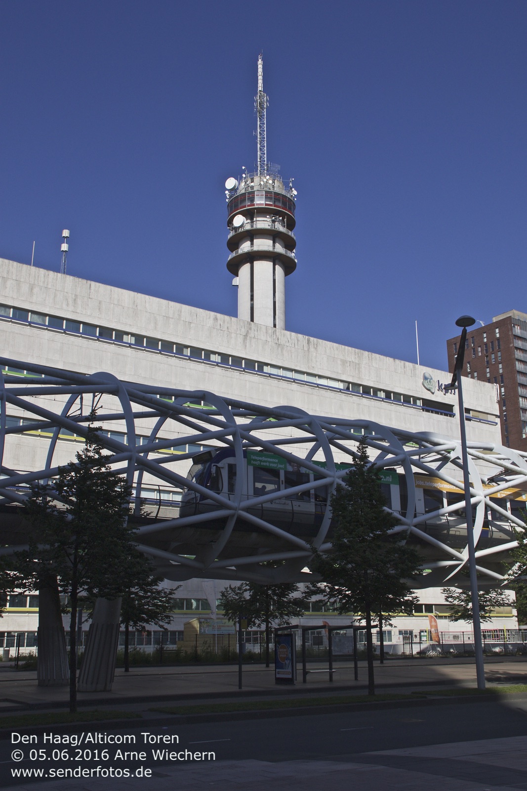 03.02.2016: Der Alticom Toren in Amsterdam in der Nähe des Messegeländes RAI ist der zentrale Standort der Stadt für Hörfunk- und TV-Ausstrahlungen. Auf UKW sind folgende Programme auf Sendung: