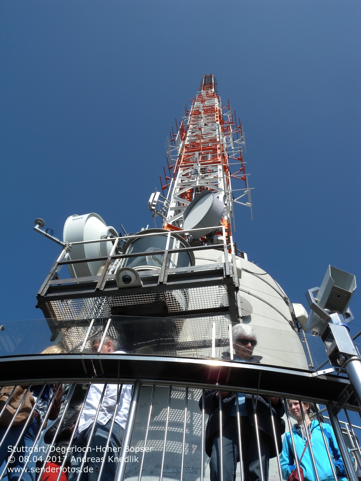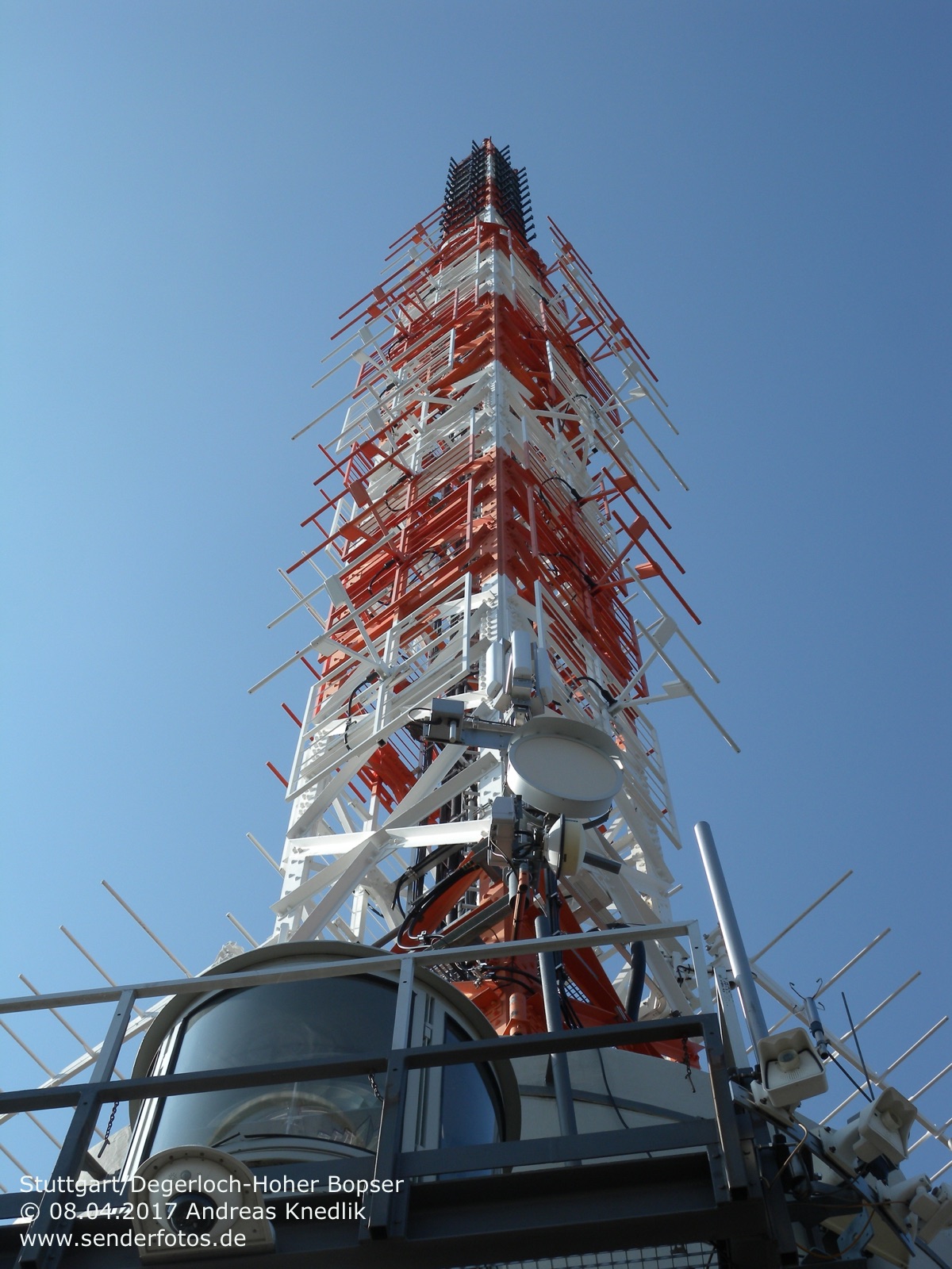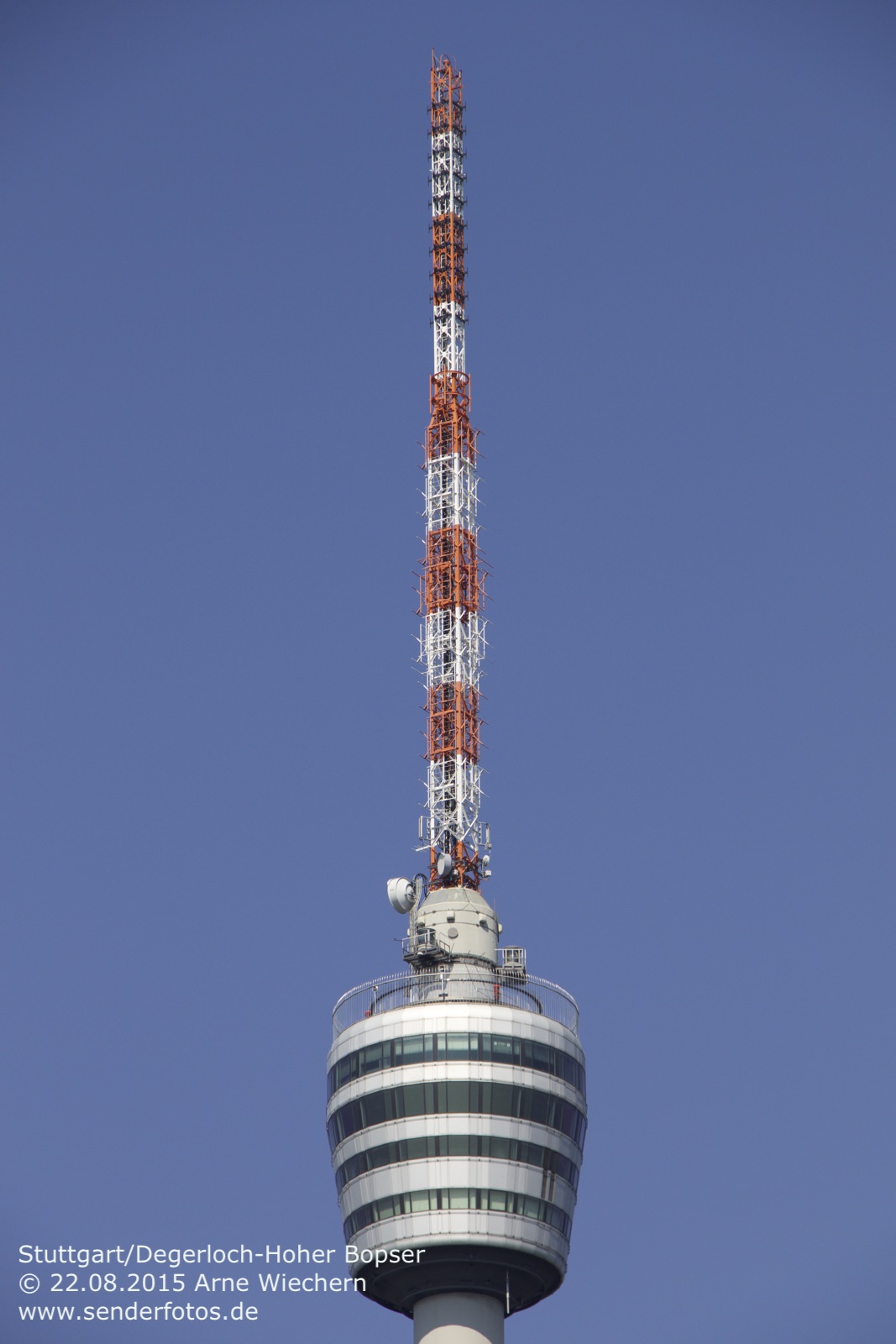 (SWR) – 11.02.2013: Der Turm hat eine Gesamthöhe von 216,61 m und wurde in den Jahren 1954/55 erbaut. In 174 m Hähe über Grund befinden sich die UKW-Antennen für SWR1 Baden-Württemberg (94,7 MHz/100 kW), SWR2 Baden-Württemberg (105,7 MHz/80 kW), SWR3 (92,2 MHz/100 kW), SWR4 Baden Württemberg (90,1 MHz/100 kW) und DLR Kultur (87,9 MHz/1 kW). Aus 193 m Höhe sendet SWR DasDing (90,8 MHz/2 kW). IM DABplus-Modus wird das SWR-Mux (Kanal 11B/10 kW) ausgestrahlt. Im Fernsehbereich sendete bis zum Start von DVB-T in der Region die ARD auf Kanal E11 mit 100 kW. Sämtliche TV-Ausstrahlungen kommen heute vom benachbarten Fernmeldeturm Stuttgart/Frauenkopf. Der Fernseh-Turm Degerloch besitzt eine öffentlich zugängliche Aussichtsplattform und ein Restaurant.