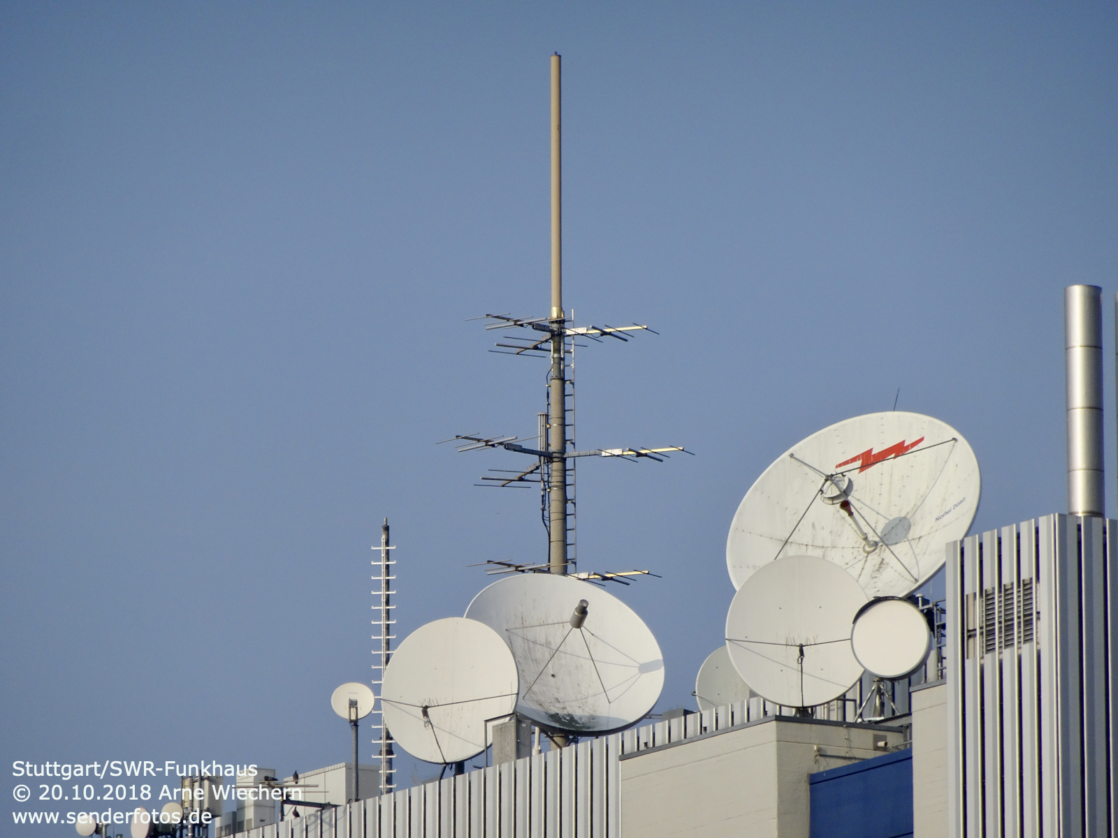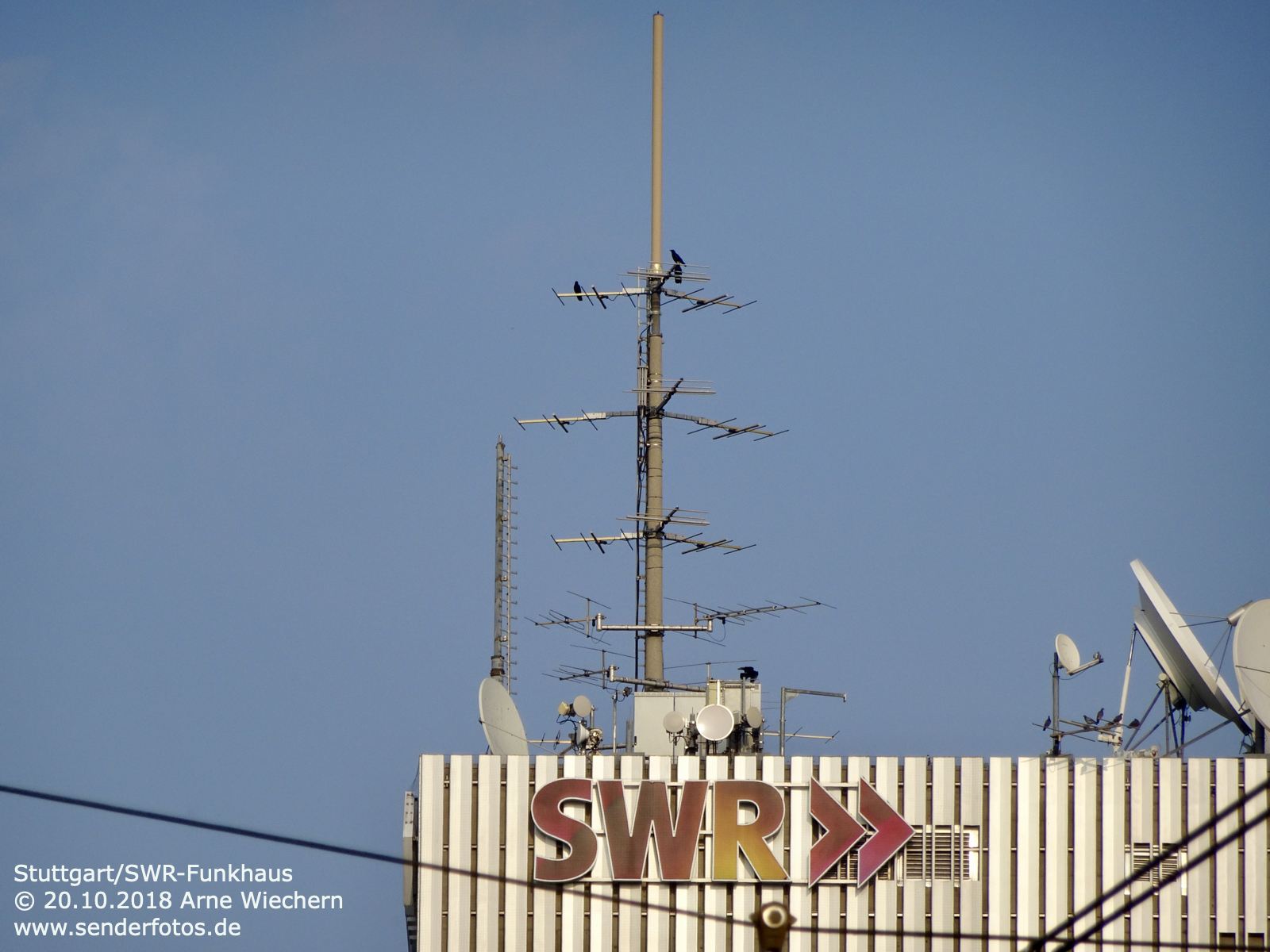 (SWR) – 04.01.2019: Am SWR-Standort Stuttgart werden die Hörfunkprogramme SWR1 Baden-Württemberg und SWR4 Baden-Württemberg produziert. Außerdem sind im 18-stöckigen Hochhaus (davon sind acht Stockwerke in den Untergrund bzw. in den Hang eingelassen) zahlreiche SWR-Fachredaktionen angesiedelt. Auf dem Dach des Hochhauses befinden sich gestockte Yagi-Antennen von denen aus einer Höhe von 66 m folgende Programme ausgestrahlt werden: SWR Aktuell (91,5 MHz/0,3 kW) und SWR1 Baden-Württemberg (99,6 MHz/0,5 kW). Weiterhin koordiniert ist die Frequenz 93,1 MHz (0,2 kW), die viele Jahre von SWR2 genutzt wurde. Seit dem 29. August 2018 wird diese Frequenz am Standort Heilbronn für DASDING genutzt – der SWR hat im Gegenzug den Stuttgarter Sender auf dieser Frequenz abgeschaltet.