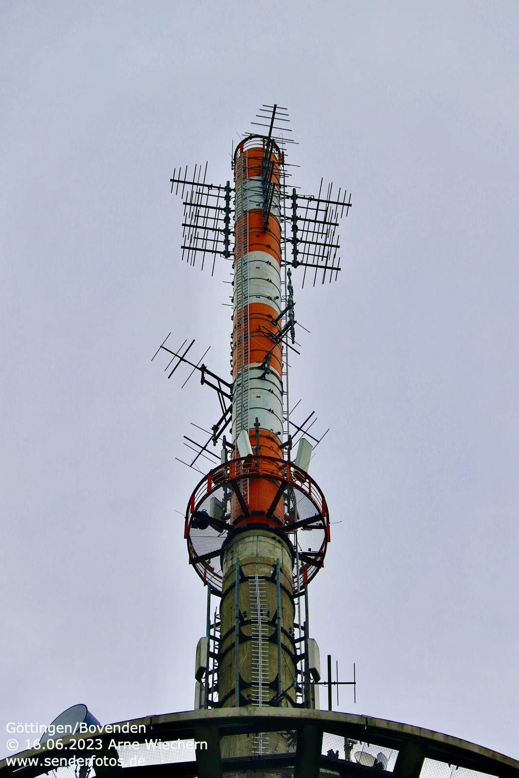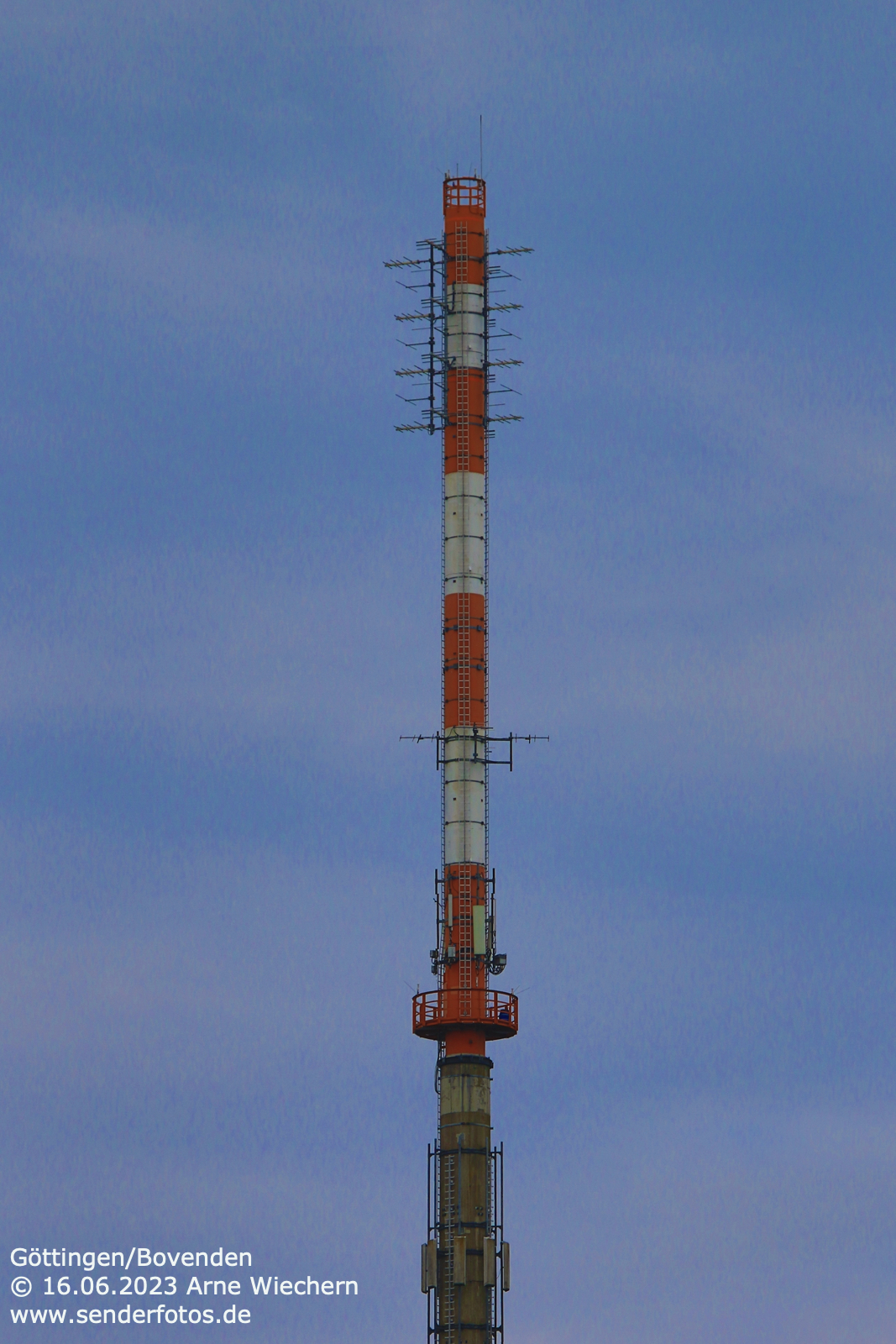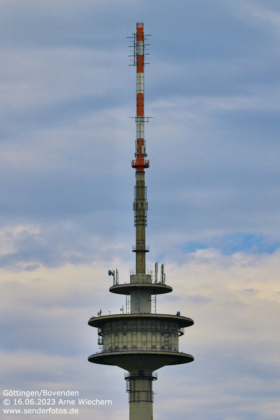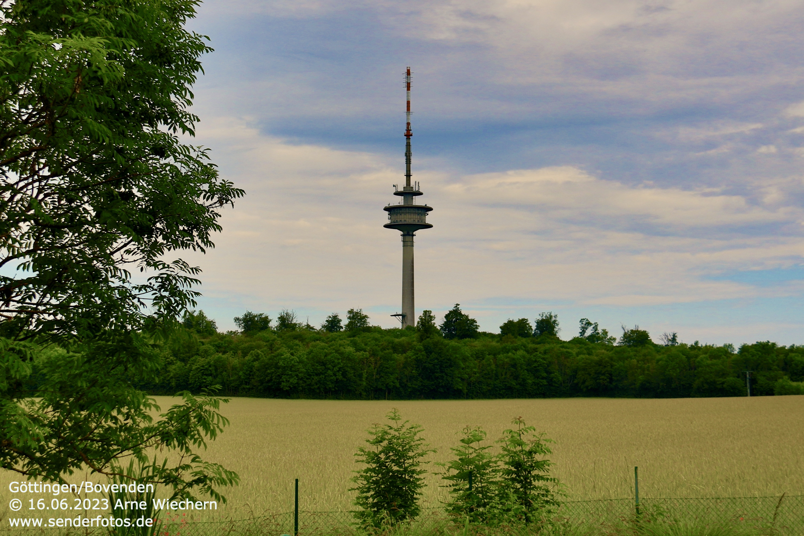 (DFMG Deutsche Funkturm GmbH) – 29.12.2012: Im Norden Göttingens befindet sich auf dem Osterberg der 155 m hohe Fernmeldeturm Göttingen/Bovenden. Es handelt sich um einen Typenturm FMT2, der in den Jahren 1972/73 erbaut worden ist. Von der Antenne in 150 m Höhe senden ffn (102,8 MHz) und Hitradio Antenne (106,0 MHz) mit jeweils 5 kW. Die Antenne in 121 m Höhe verwenden Radio 21 (93,4 MHz) und Stadtradio Göttingen (107,1 MHz) mit jeweils 1 kW, aber auch der DLF auf 101,0 MHz (0,1 kW).