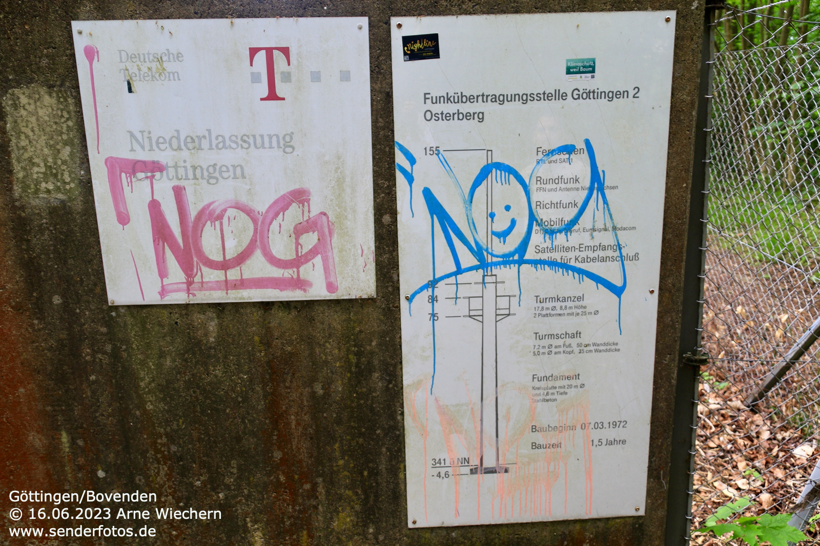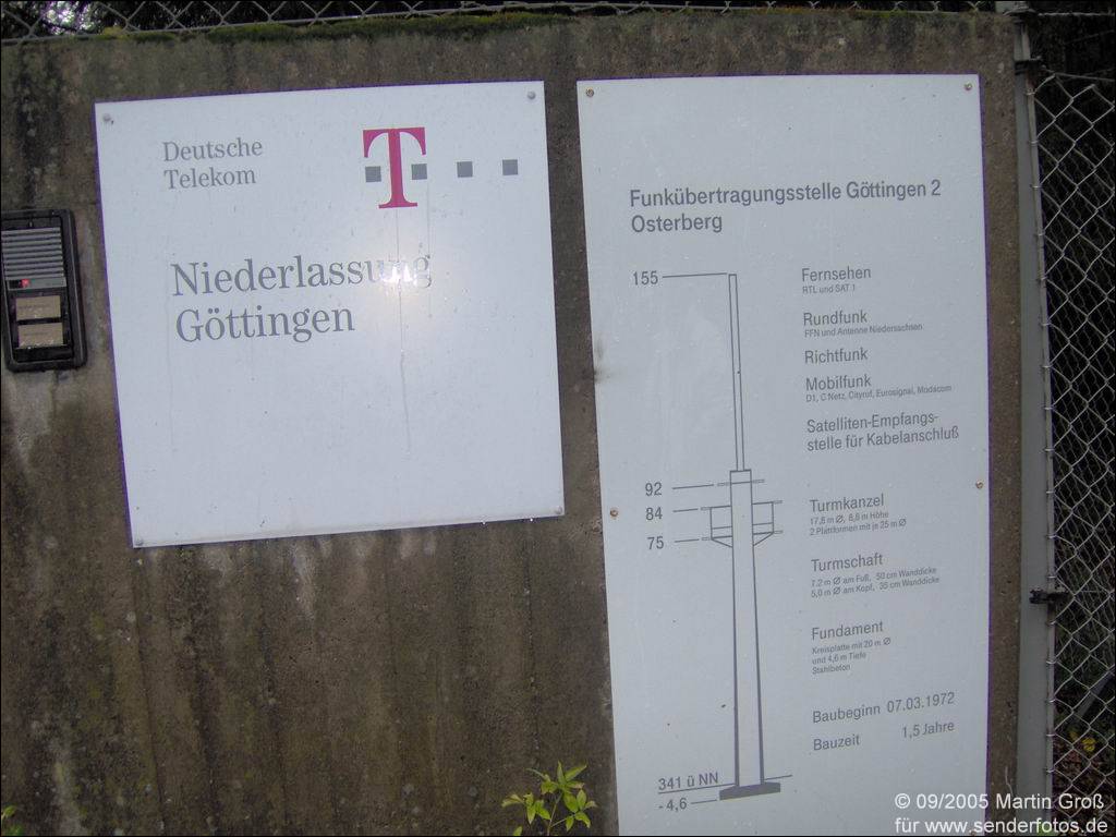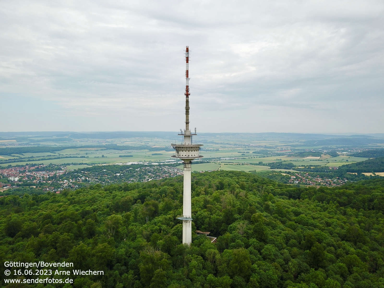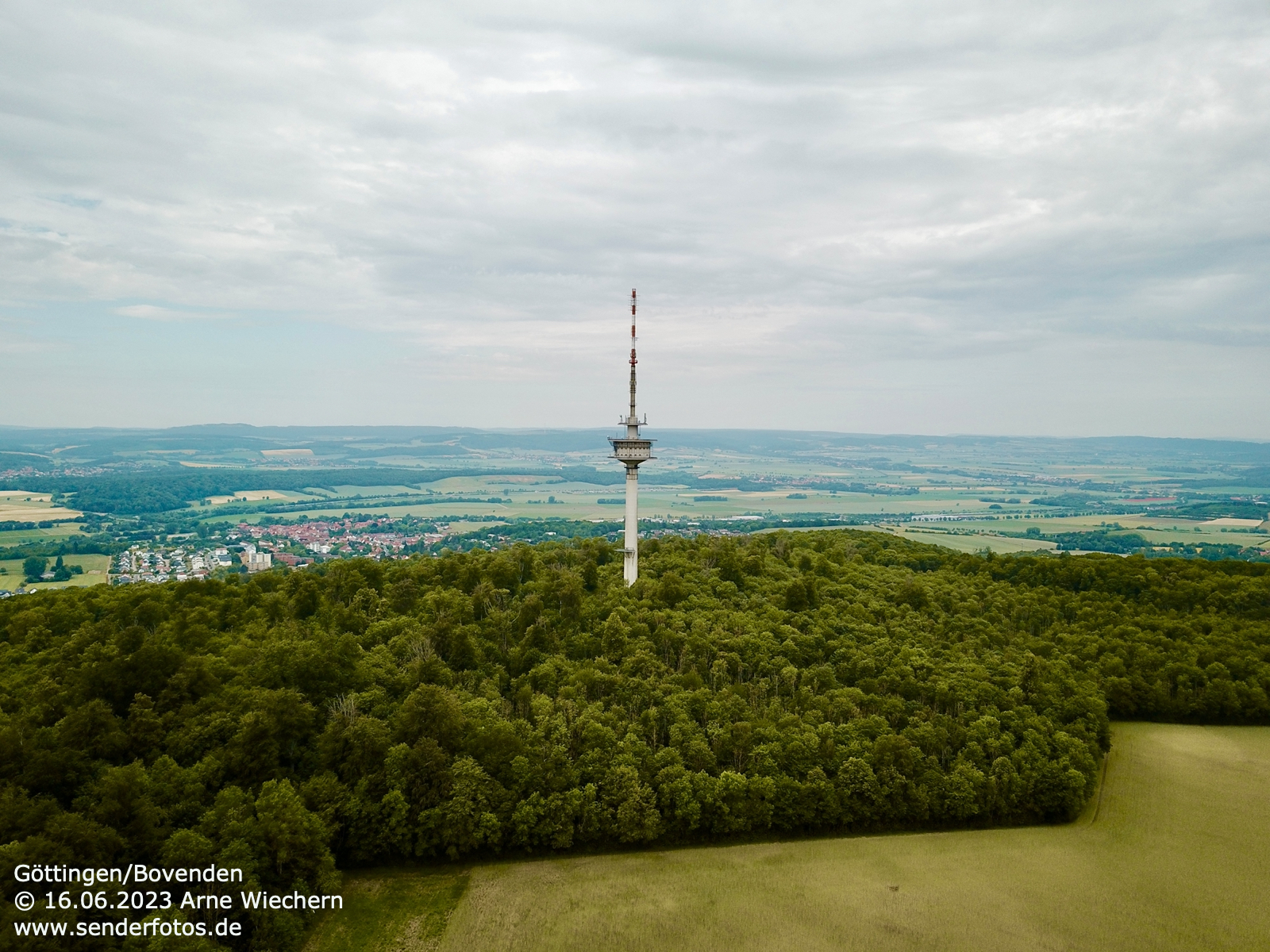 (DFMG Deutsche Funkturm GmbH) – 29.12.2012: Im Norden Göttingens befindet sich auf dem Osterberg der 155 m hohe Fernmeldeturm Göttingen/Bovenden. Es handelt sich um einen Typenturm FMT2, der in den Jahren 1972/73 erbaut worden ist. Von der Antenne in 150 m Höhe senden ffn (102,8 MHz) und Hitradio Antenne (106,0 MHz) mit jeweils 5 kW. Die Antenne in 121 m Höhe verwenden Radio 21 (93,4 MHz) und Stadtradio Göttingen (107,1 MHz) mit jeweils 1 kW, aber auch der DLF auf 101,0 MHz (0,1 kW).