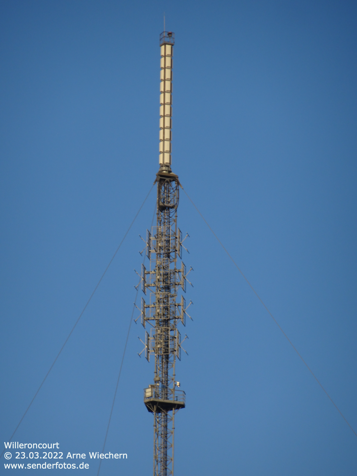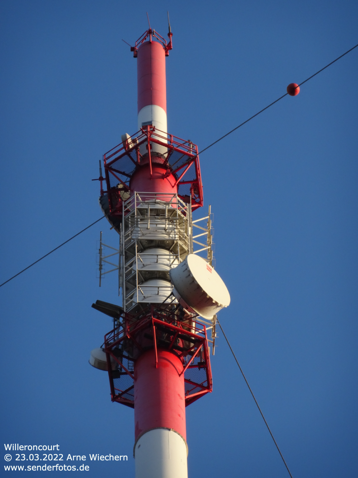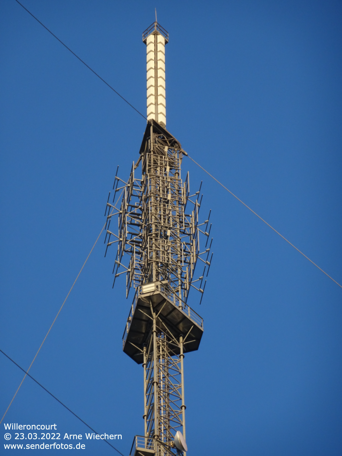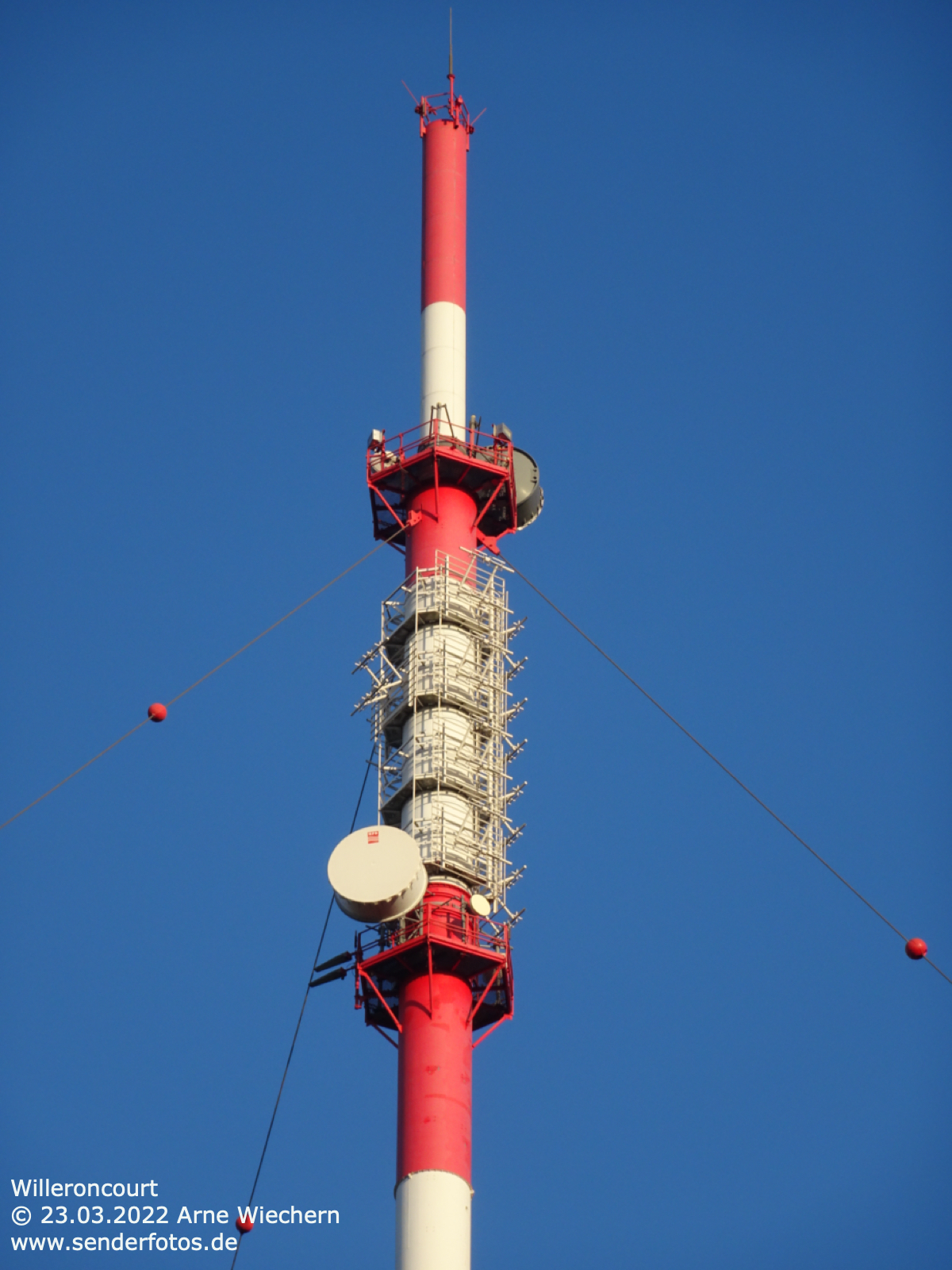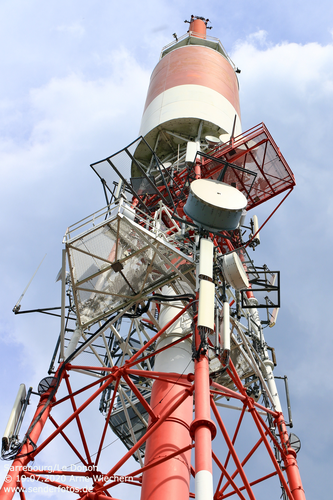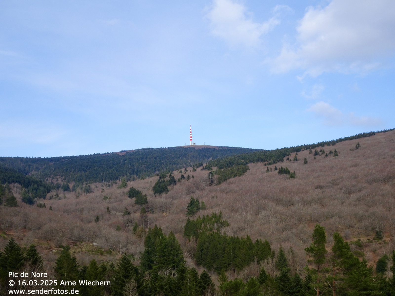 (TDF) – 17.03.2025: Die Sendeanlage auf dem Pic de Nore befindet sich in einer Höhenlage von 1210 m auf dem Gemeindegebiet Pradelles-Cabardès. Als Antennenträger dient ein 102 m hoher Stahlbetonturm, der 1976 errichtet wurde. Sein Vorgängerbau war in Folge eines Sturmes eingestürzt. Dieser Vorgängerturm war im Gegensatz zum aktuellen Antennenträger direkt auf dem Dach des Sendergebäudes montiert. Sein Stumpf wird noch heute als Plattform für eine Vielzahl kleinerer Antennen genutzt. Die Sendeantennen selbst sind jedoch am großen Stahlbetonturm montiert und zum Schutz vor Vereisung komplett mit GFK-Verschalungen verkleidet.