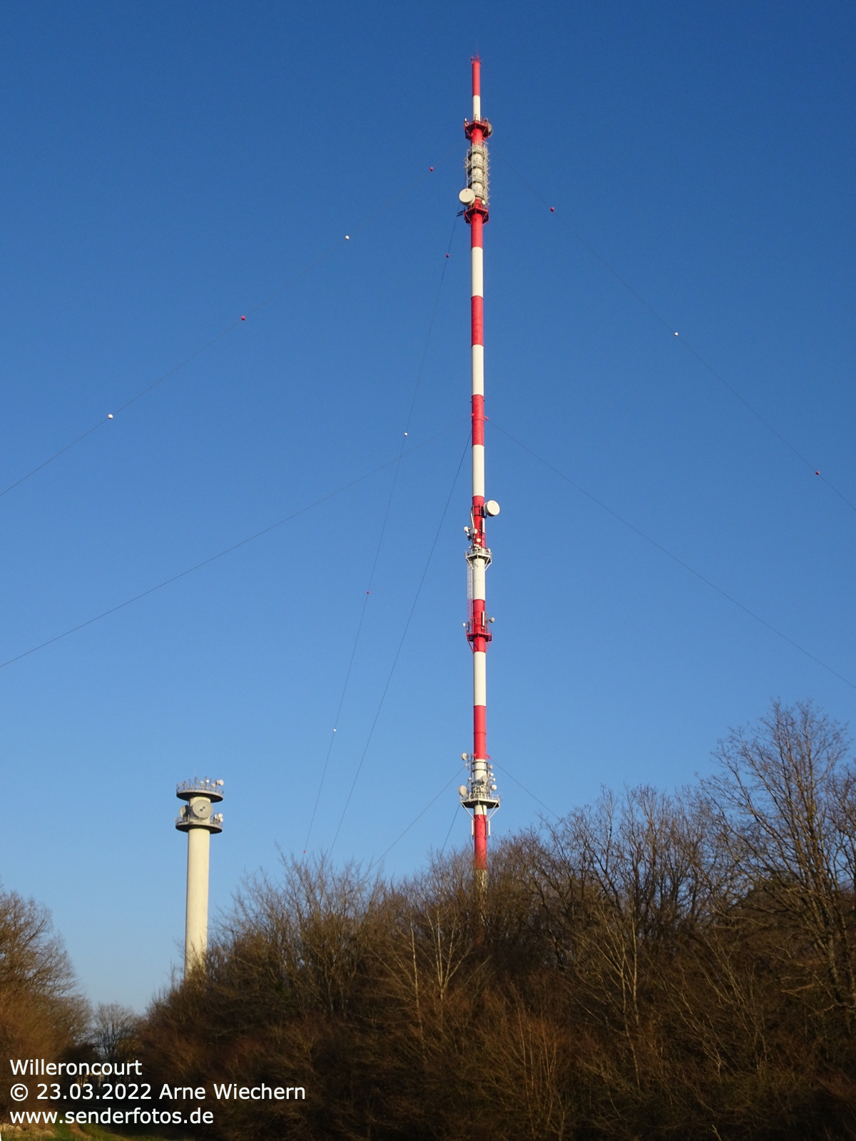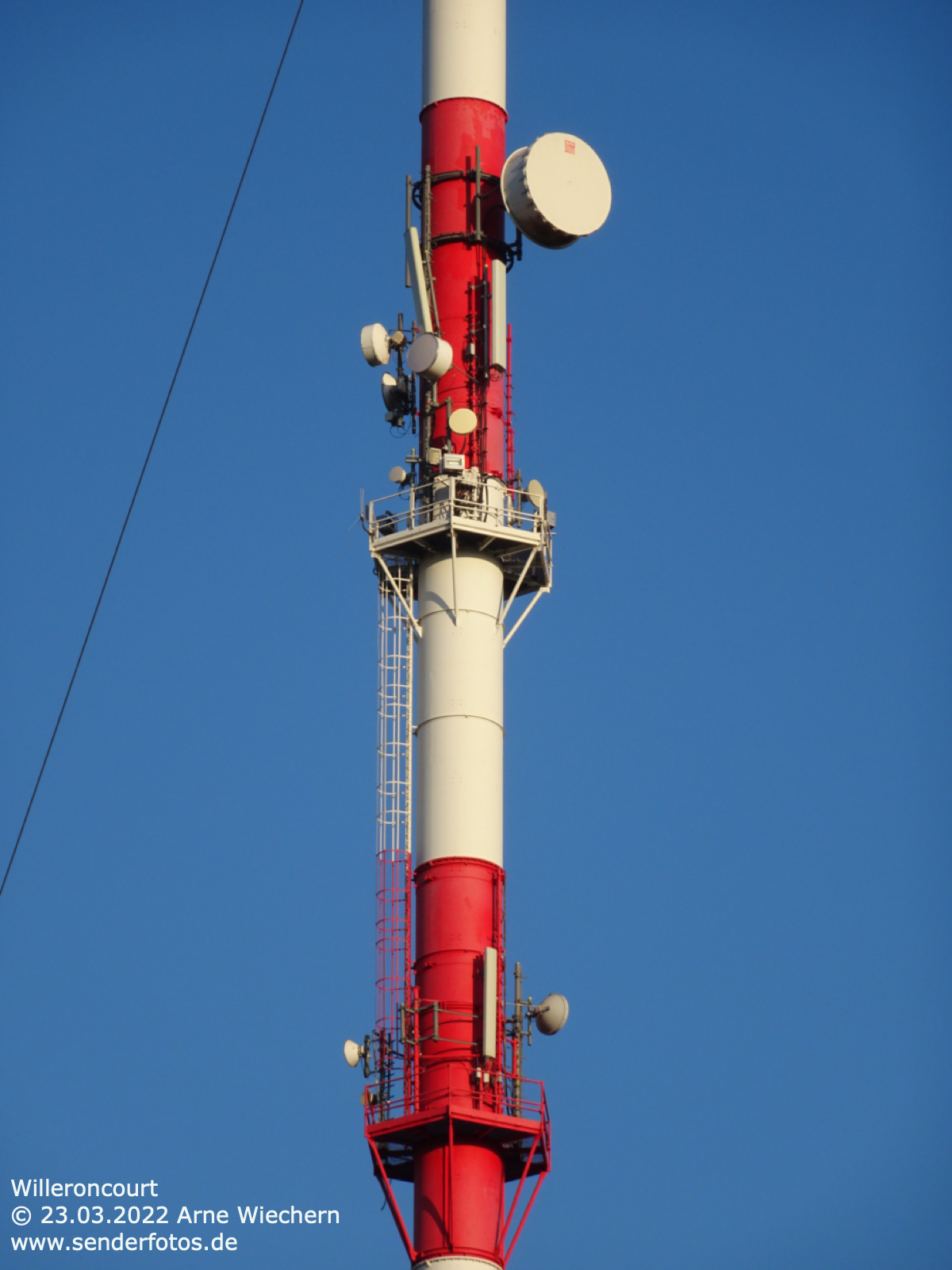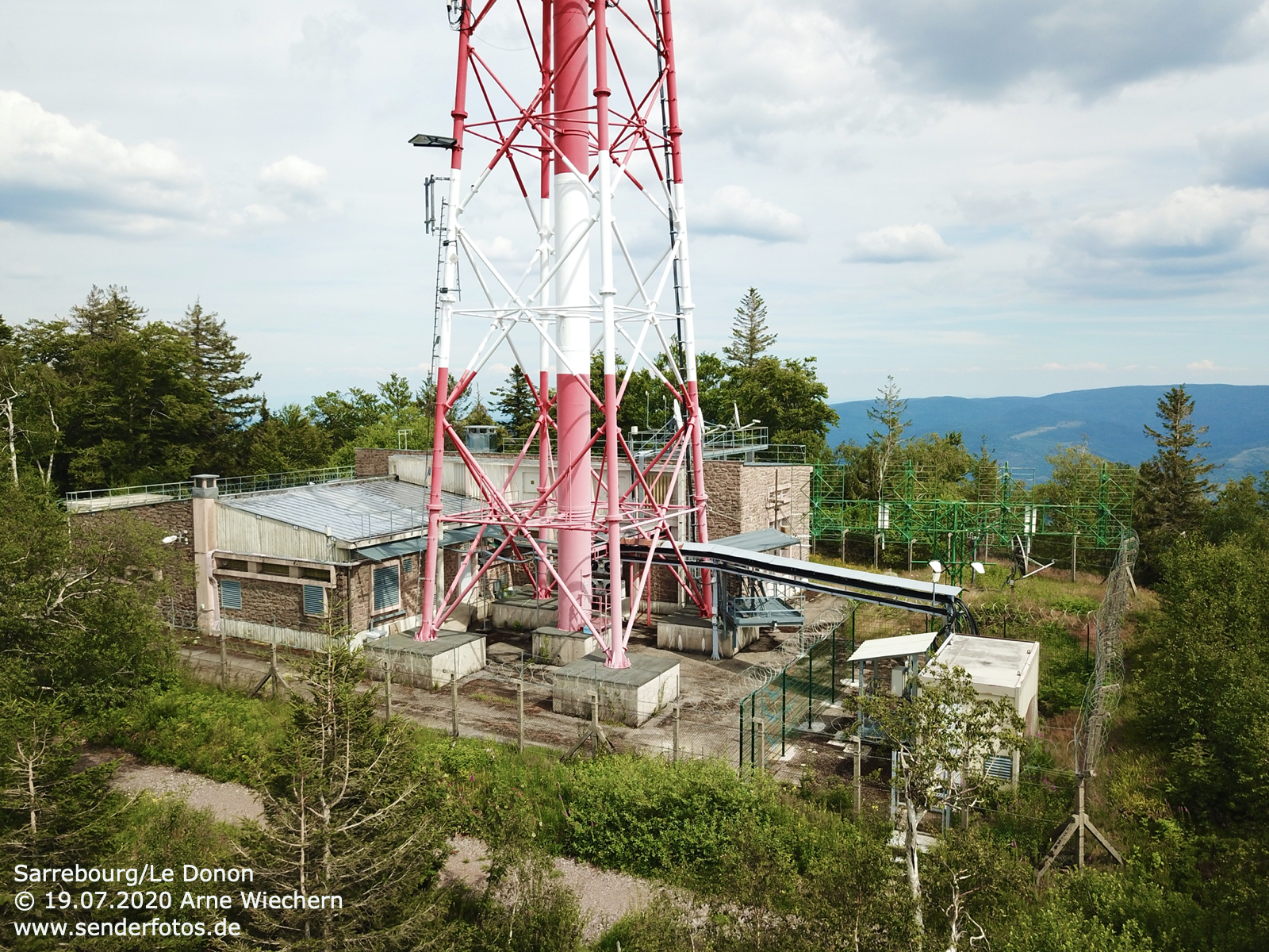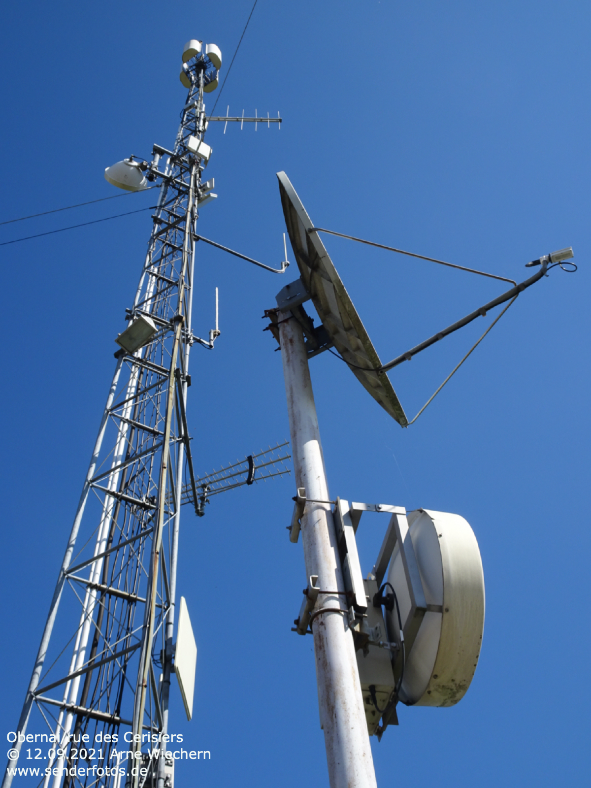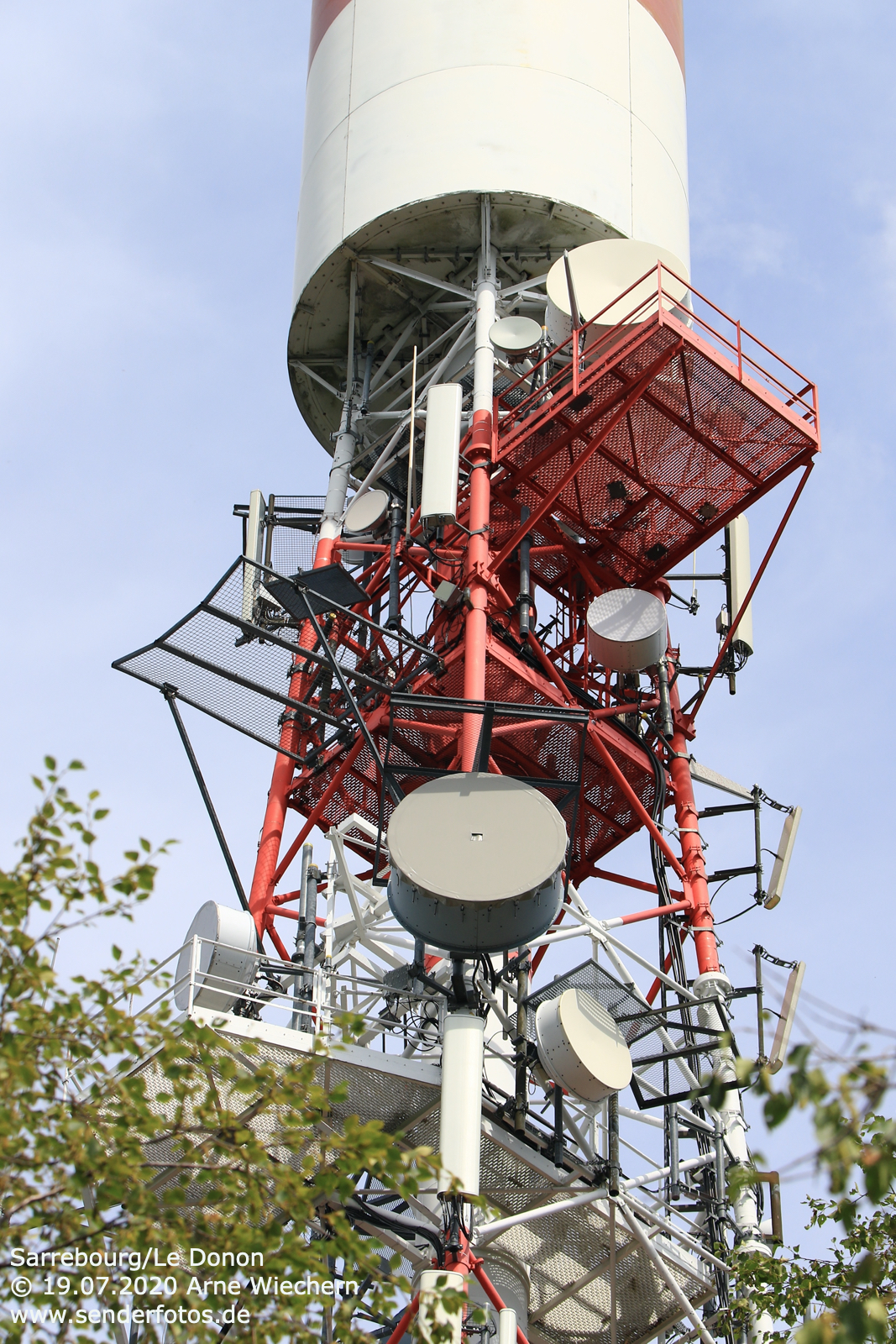 (TDF) – 17.03.2025: Die Sendeanlage auf dem Pic de Nore befindet sich in einer Höhenlage von 1210 m auf dem Gemeindegebiet Pradelles-Cabardès. Als Antennenträger dient ein 102 m hoher Stahlbetonturm, der 1976 errichtet wurde. Sein Vorgängerbau war in Folge eines Sturmes eingestürzt. Dieser Vorgängerturm war im Gegensatz zum aktuellen Antennenträger direkt auf dem Dach des Sendergebäudes montiert. Sein Stumpf wird noch heute als Plattform für eine Vielzahl kleinerer Antennen genutzt. Die Sendeantennen selbst sind jedoch am großen Stahlbetonturm montiert und zum Schutz vor Vereisung komplett mit GFK-Verschalungen verkleidet.