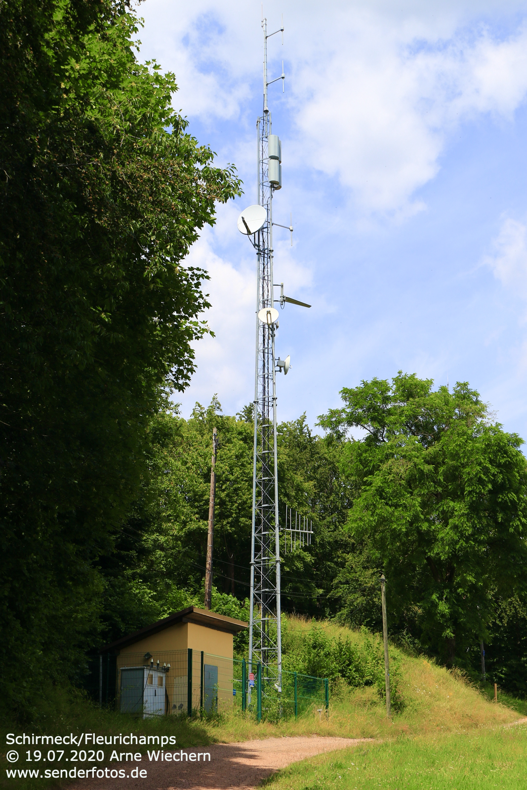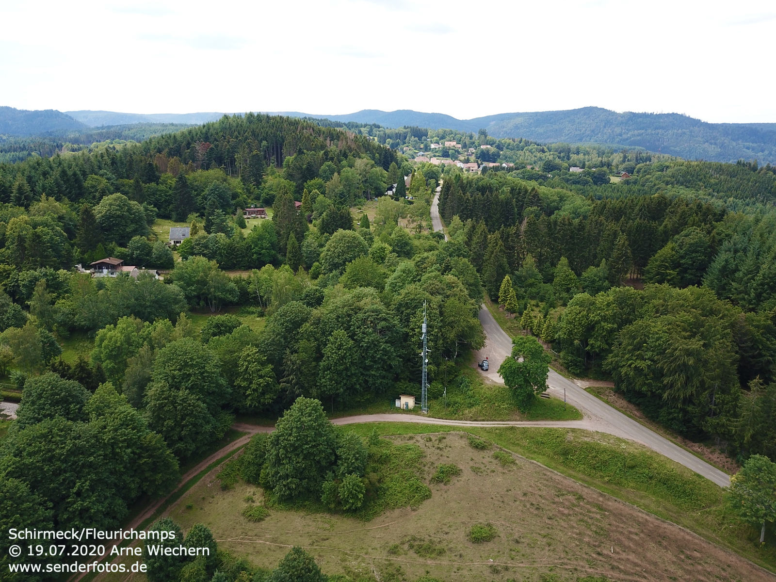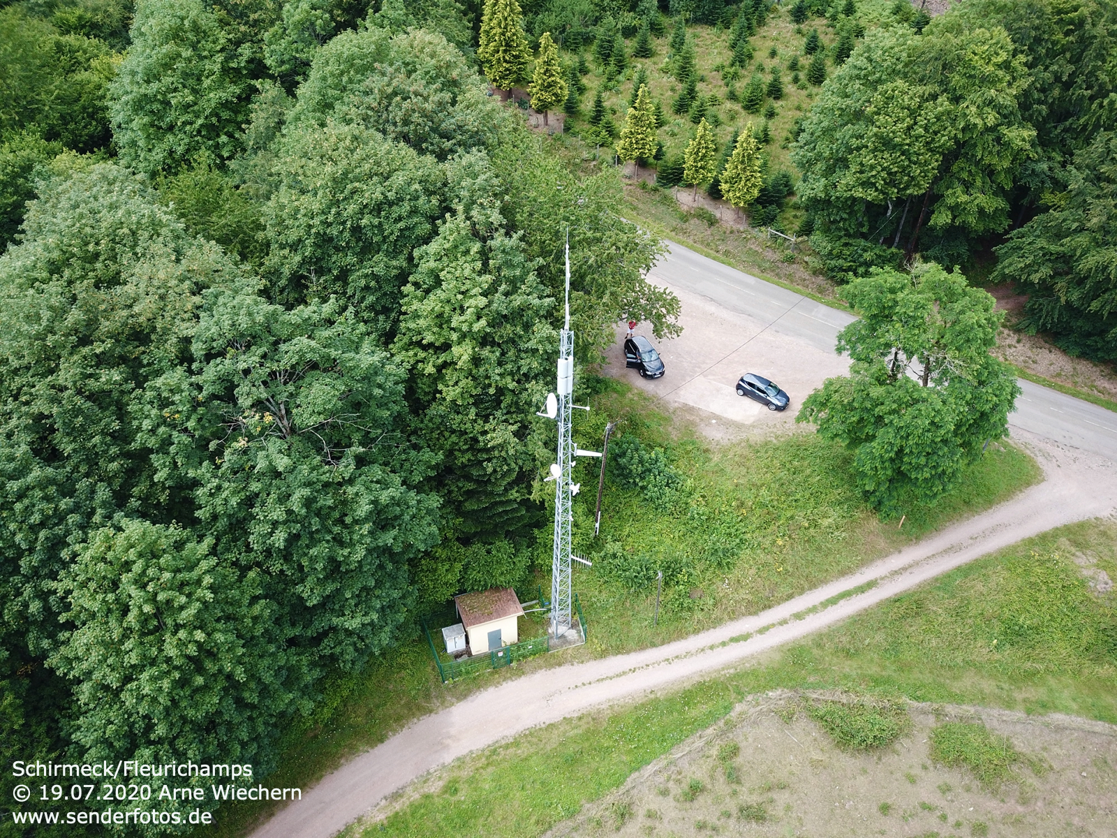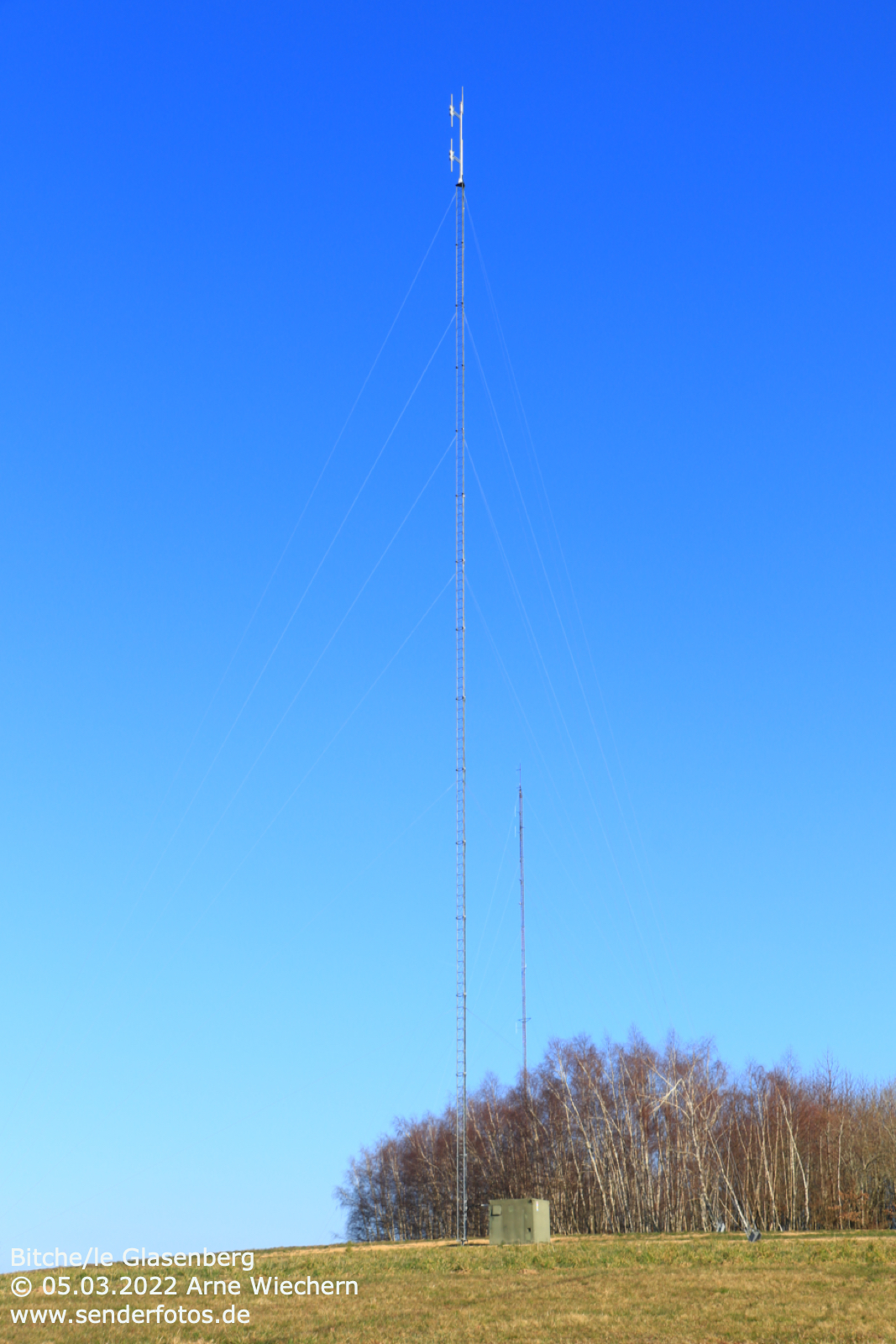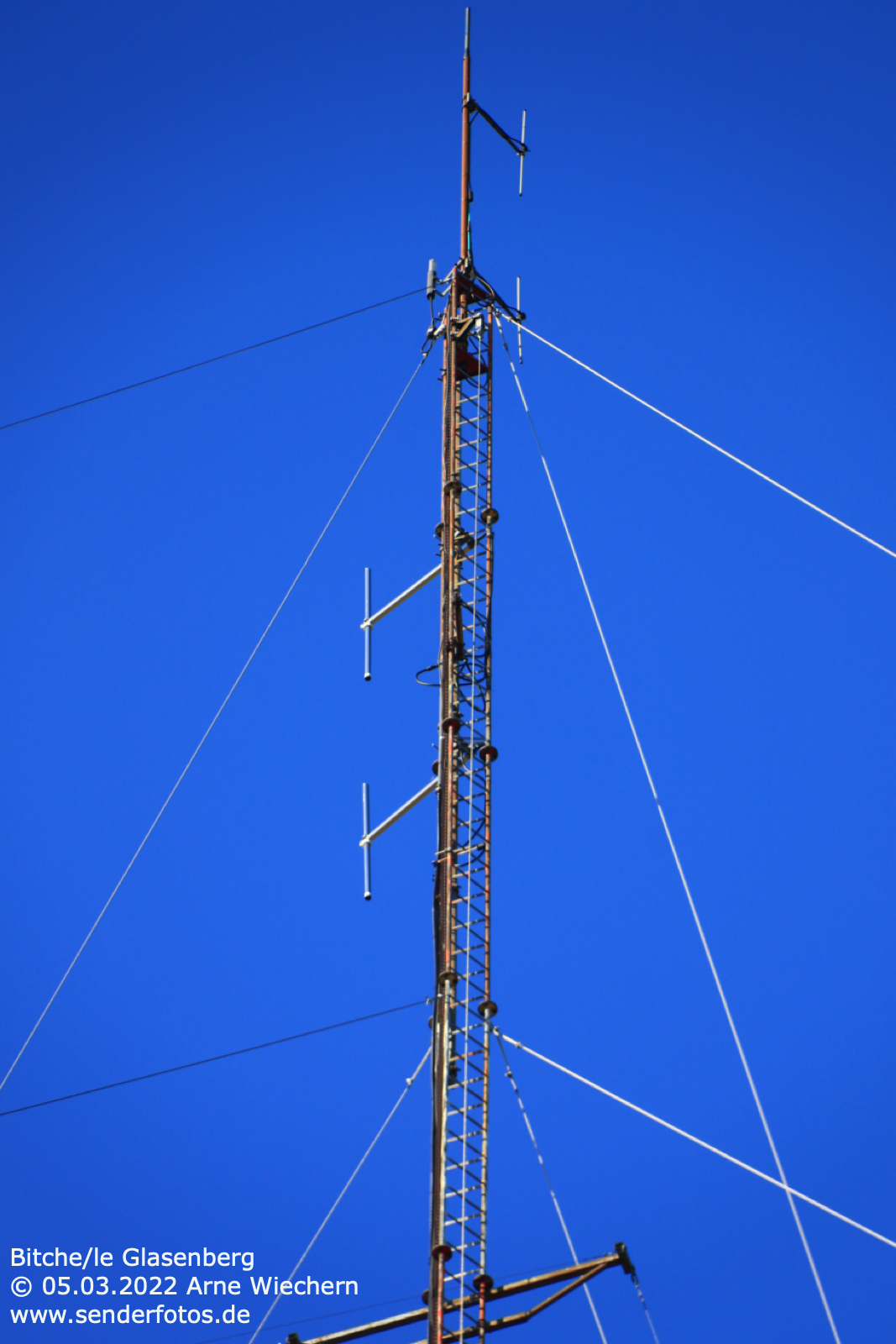 (TDF) – 17.03.2025: Die Sendeanlage auf dem Pic de Nore befindet sich in einer Höhenlage von 1210 m auf dem Gemeindegebiet Pradelles-Cabardès. Als Antennenträger dient ein 102 m hoher Stahlbetonturm, der 1976 errichtet wurde. Sein Vorgängerbau war in Folge eines Sturmes eingestürzt. Dieser Vorgängerturm war im Gegensatz zum aktuellen Antennenträger direkt auf dem Dach des Sendergebäudes montiert. Sein Stumpf wird noch heute als Plattform für eine Vielzahl kleinerer Antennen genutzt. Die Sendeantennen selbst sind jedoch am großen Stahlbetonturm montiert und zum Schutz vor Vereisung komplett mit GFK-Verschalungen verkleidet.