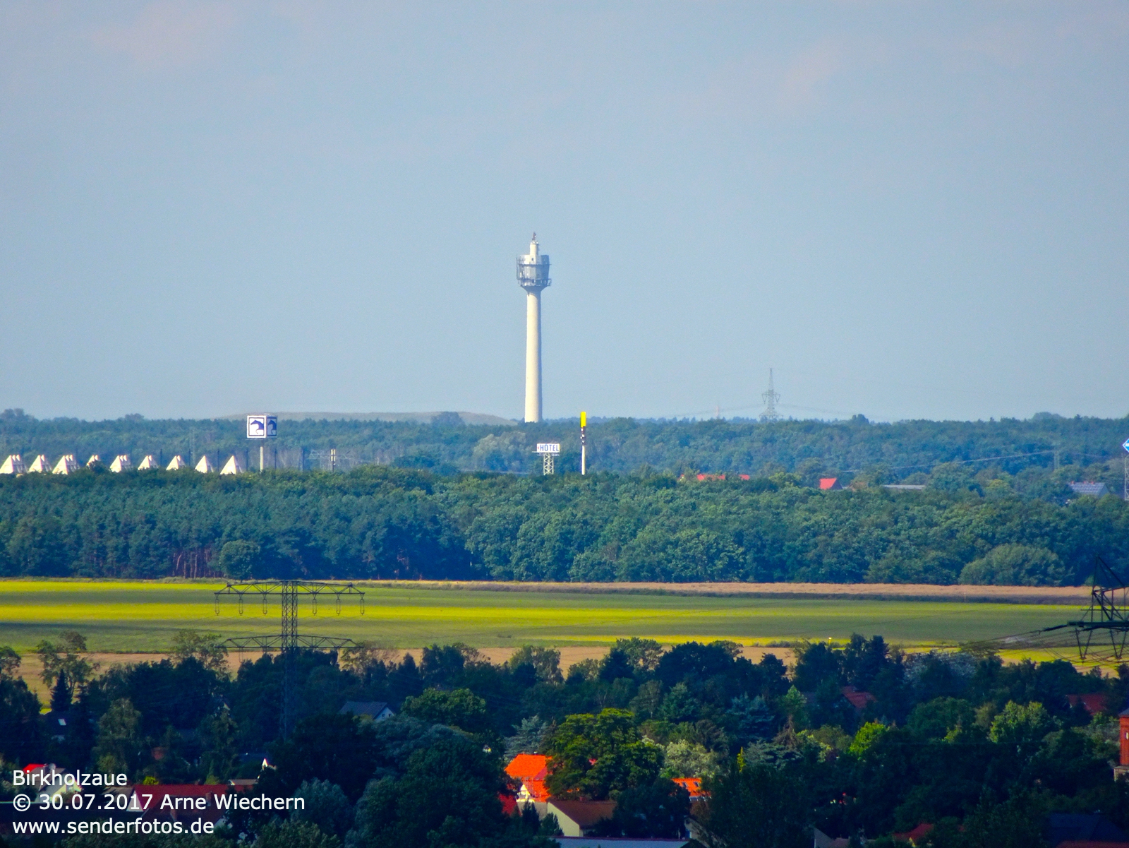 12.10.2022: Der 110 m hohe Turm nordöstlich von Berlin wurde im Jahr 1959 fertiggestellt. Die Bezeichnung „Dezimeterturm“ erhielt diese Anlage, weil sie für die Übertragung sogenannter Dezimetermeterwellen mit einer Wellenlänge zwischen 10 und 100 cm genutzt wurde. Der Turm wurde im Auftrag des Ministeriums für Post und Fernmeldewesen der DDR errichtet. Inwieweit er auch der Stasi als „Horchposten“ diente, ist nicht bekannt. Hörfunk- und Fernsehausstrahlungen für die Öffentlichkeit haben von dieser Anlage nie stattgefunden.
